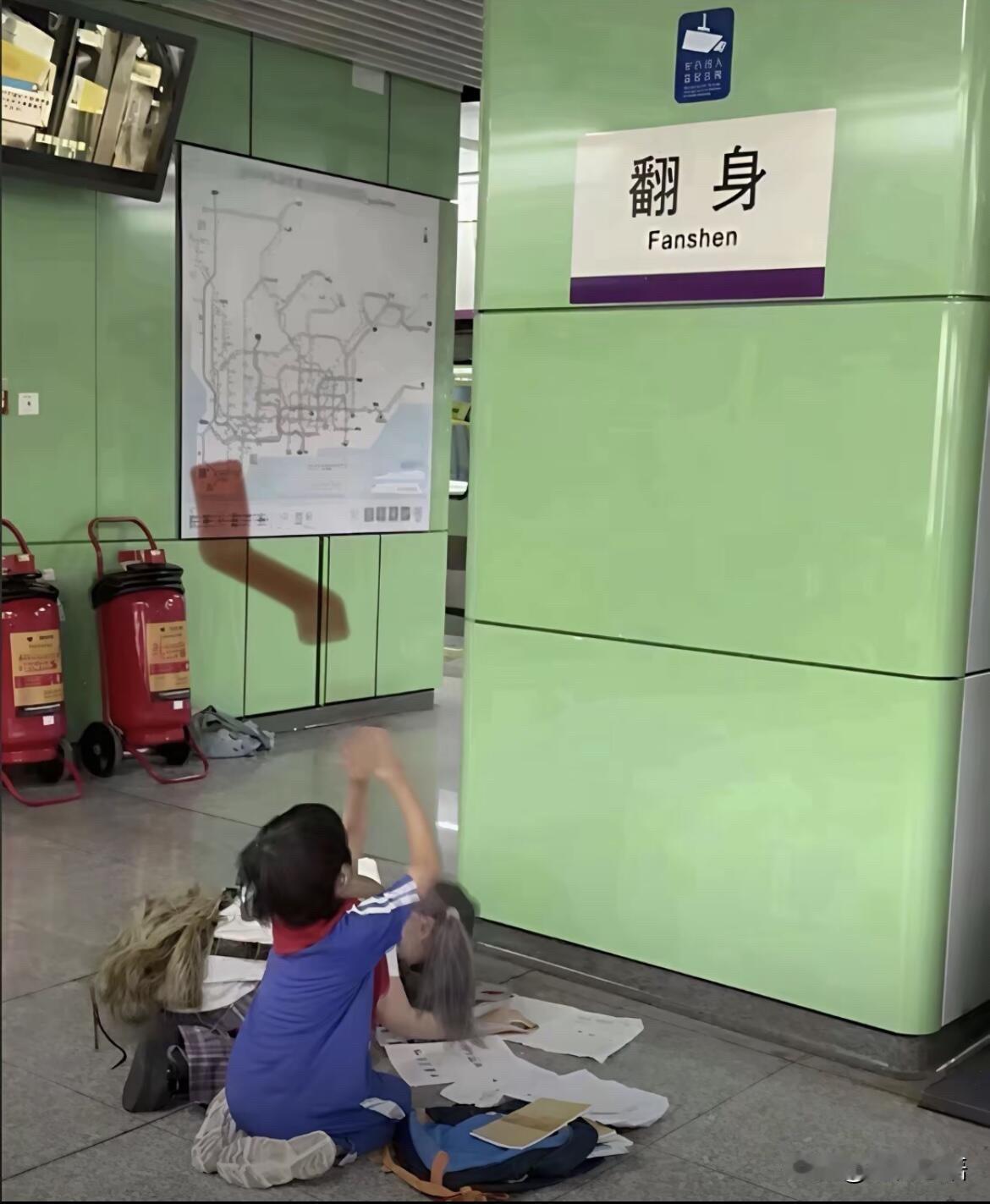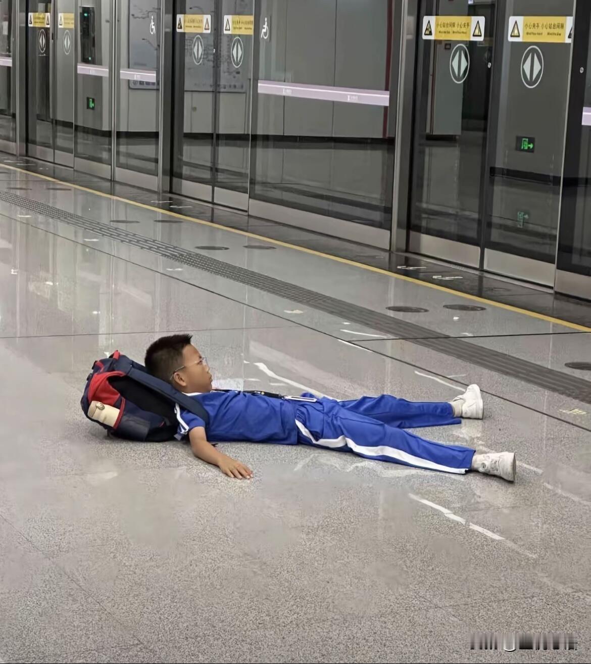 深圳小学生的松弛感,把成年人卷晕了! 深圳地铁直接变小学生的“摆烂乐园”🤣 放学的“蓝精灵军团”一上线, 画风直接跑偏~ 翻身站就地铺作业, 主打字面意义的“翻身”! 地铁扶手当单杠, 站台躺平书包当枕头,绝了! 垃圾桶是课桌, 石墩子支棱作业本,空间利用率拉满! 车厢里更随性,坐的躺的瘫的, 还有人搬折叠桌喝奶茶写作业~ 这届娃的松弛感是焊在DNA里的吧! 作业在哪写不是写,觉在哪睡不是睡~ 没到家,整个世界都是他们的课间休息区! 对比成年人的紧绷, 这精神状态领先十年都不止! 果然,最会享受生活的,还是小学生啊😂
