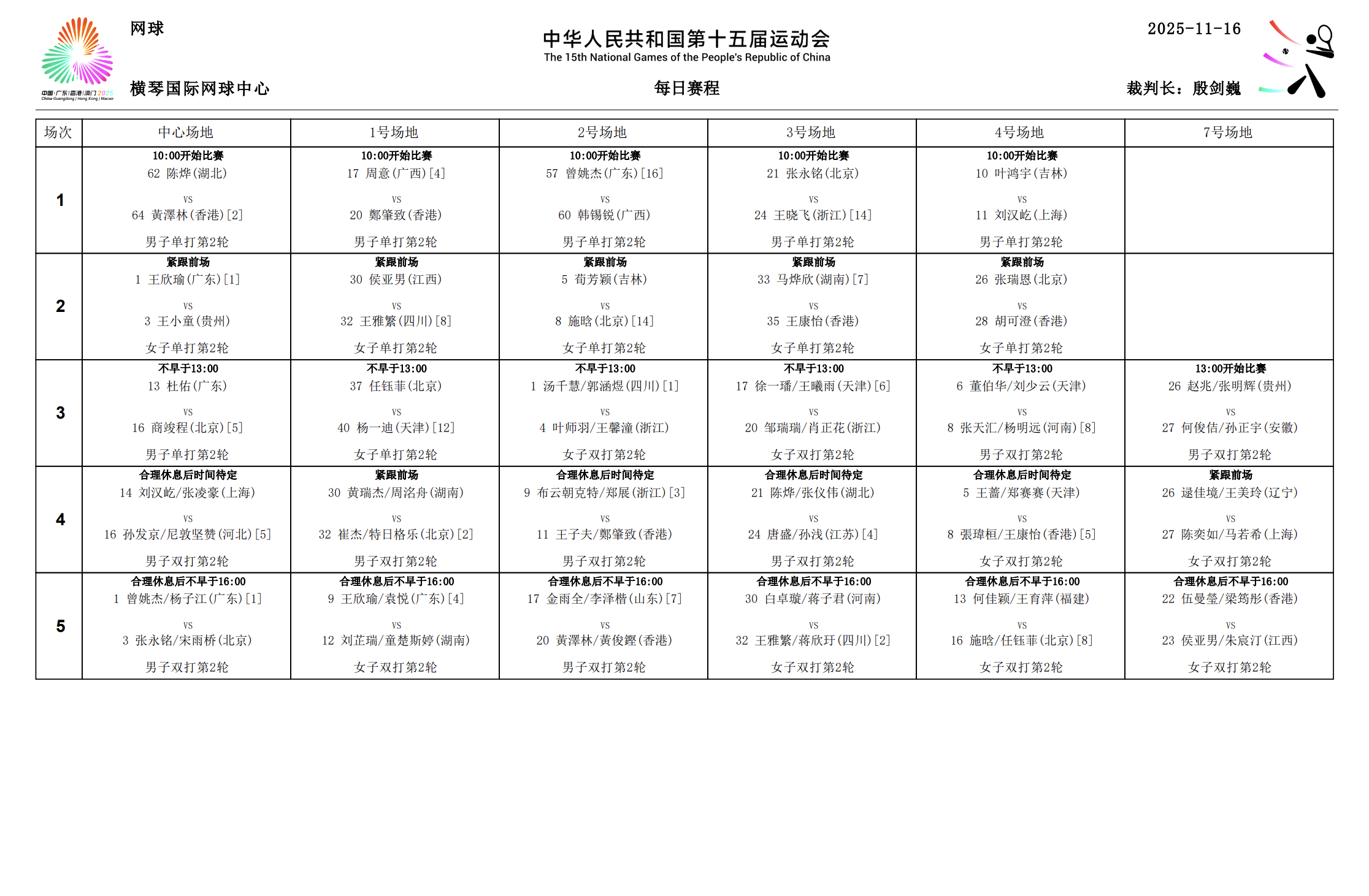 明日全运会网球赛程,就一个转播场地还搞端水,每个项目都要有一场进中心场,男单有两