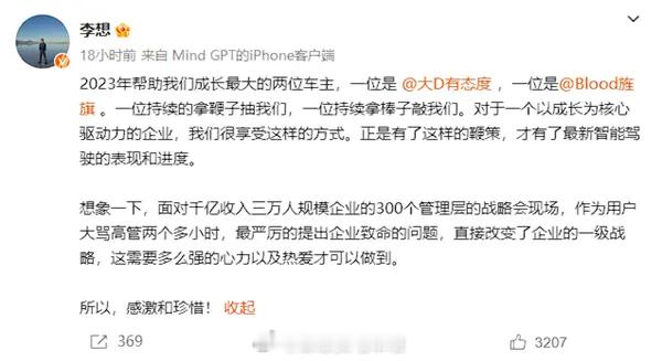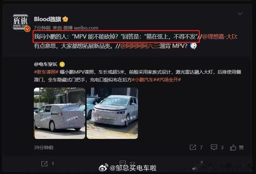 突然发现一个有趣的事,不知道是否是巧合?图1博文截屏里被点名和表扬的这两位博主,居然齐刷刷的出现在了图2的这个博文截屏里面,那其中一位就是人尽皆知的,而且自称在行业里面有话语权的阿艹。我只想说一点:事实证明小鹏X9对于小鹏汽车来说,是一款非常重要的战略性产品,而且是取得了成功的产品,包括11月20日即将正式上市的超级增程版本。我就说这一点,其他的,留给网友们来评论!