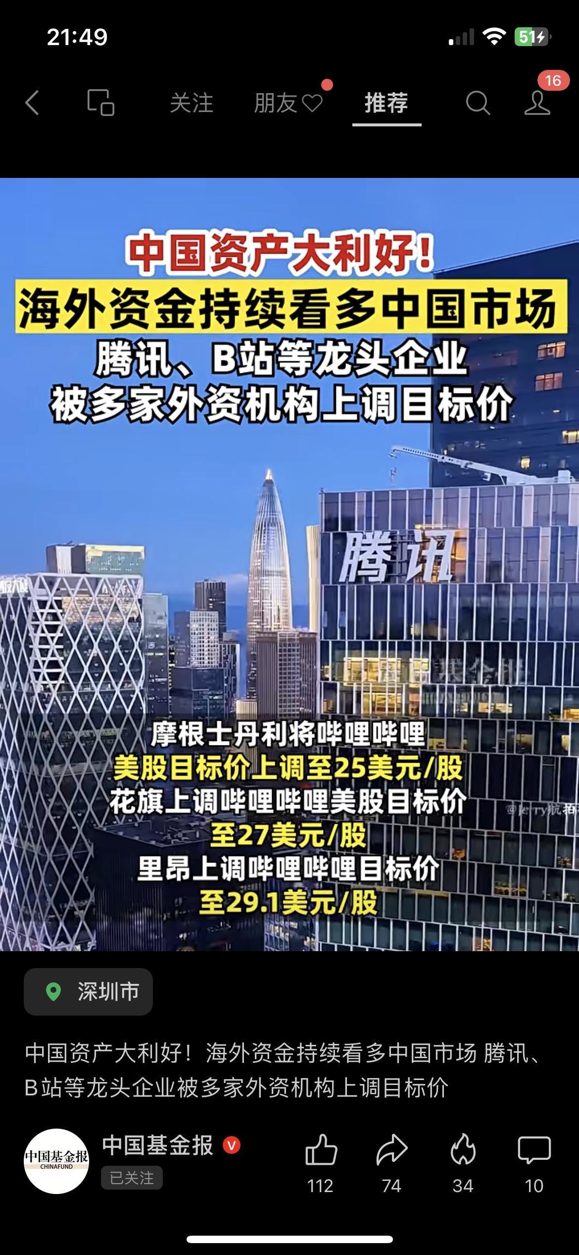 外资疯抢中国资产!腾讯B站目标价直接涨疯,这波行情要来了? 腾讯刚刷到中国基金