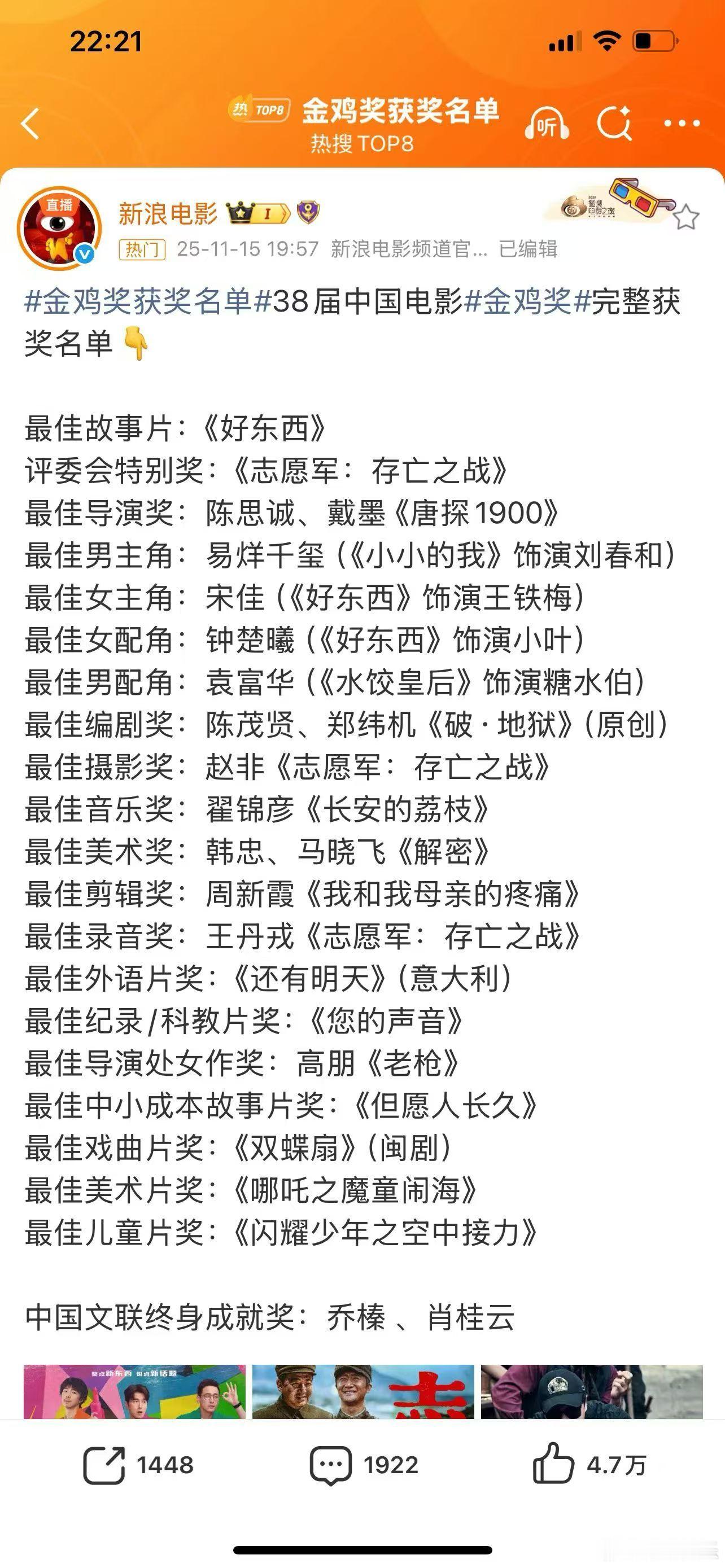 每届电影节奖项都会有争议,今年金鸡奖也不例外,最大争议应该是最佳导演奖给了陈思诚