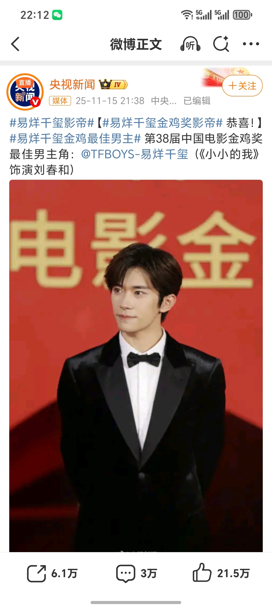 恭喜!!🎉青年演员无可争议的实力派!咱理想车主的品牌代言人含金量再次提升!