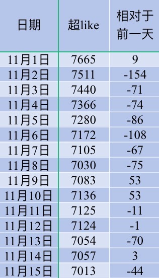 wxy昨天的超喜欢和发帖人数还有今天的超喜欢底数都稍微的下降了一丢丢