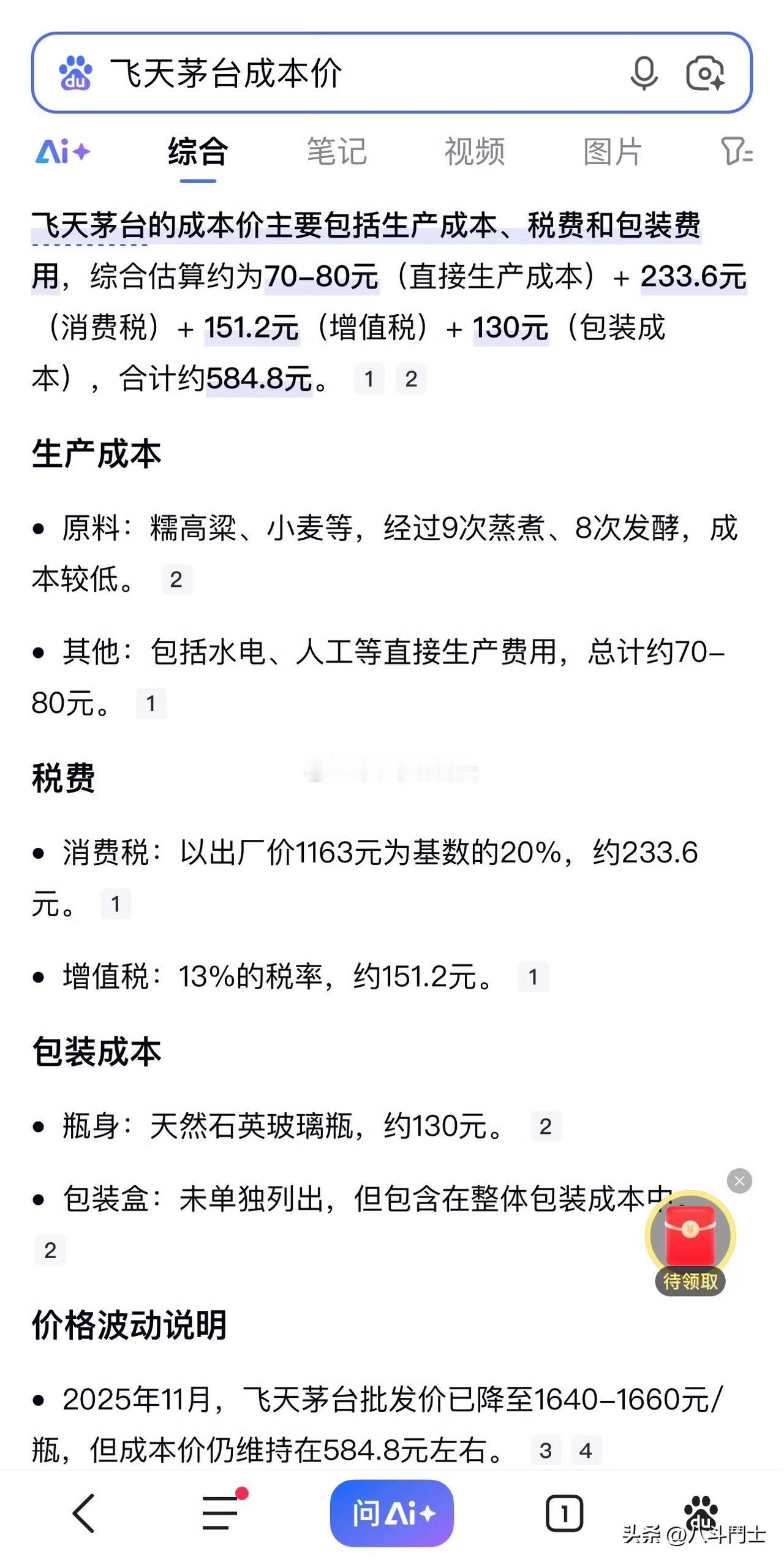 飞天茅台价格遭腰斩?曾经卖到 3800 左右一瓶的飞天茅台如今只要 1869,部分电商补贴更是低至 1299-1499 跌幅超过两千。前几年大量囤积茅台等待升值的人估计一肚子苦水无处倒吧,为什么茅台卖不动了?其实,如果按成本算的话,酒的成本都比包装成本低,加上部分品牌溢价,更多的是一些人的炒作,把茅台酒一度活生生炒成了具有一定金融属性的东西,因为从贵州茅台厂近几年的净利润来看是一直在涨的,只是涨幅有所下降。你觉得茅台价格还能再降吗? 贵州茅台 茅台行情 茅台全线下跌 飞天茅台 茅台酒 茅台北京价格 茅台价格乱象