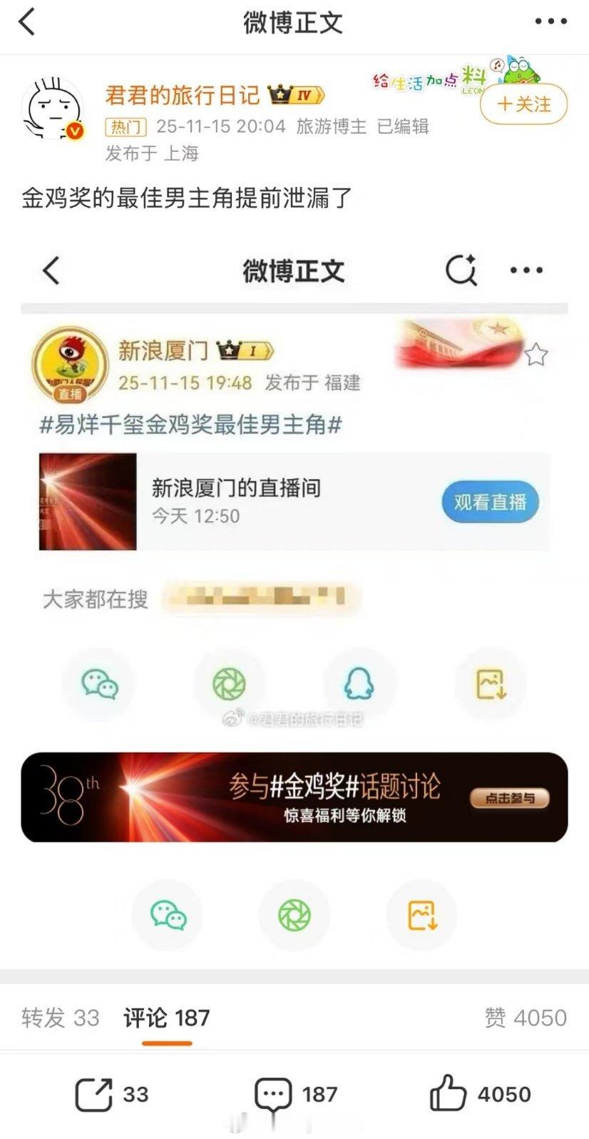 易烊千玺拿金鸡影帝?新浪厦门提前发布了