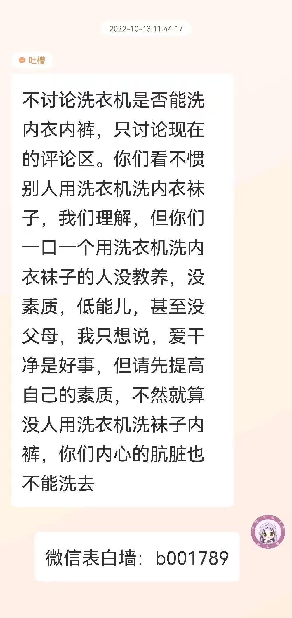 如何评价西安交通大学的学生为了争辩洗衣机洗内裤袜子的合理性在表白墙上大吵并且建Q
