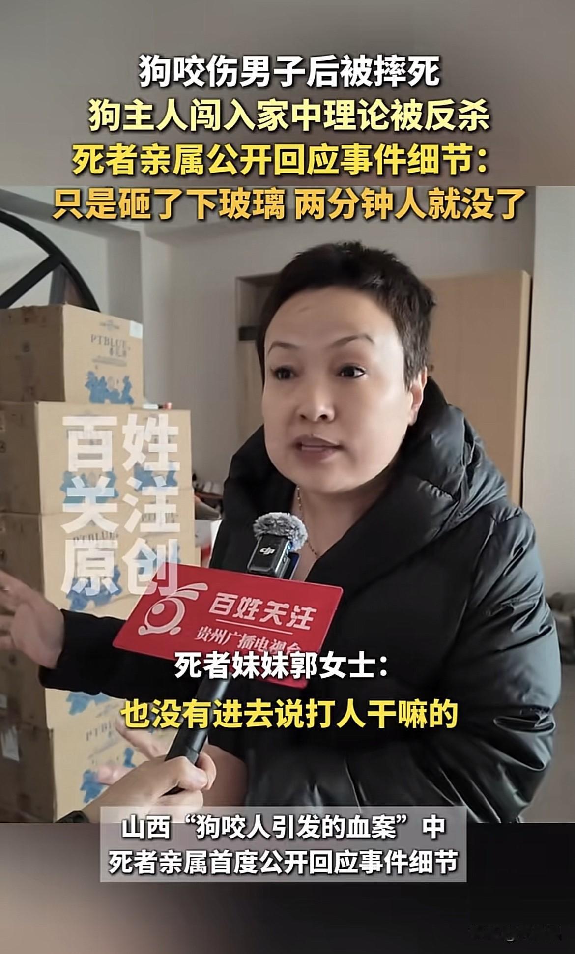 狗咬下这一口,估计都没想到会闯这么大的祸,山西狗咬人反杀案在网上被热议,案件最大的争议点在于被告是否正当防卫过当。 原告方称:“是赤手空拳上门,就砸了一下玻璃,没有进去说打人什么的”。那这么大帮人带着铁锹上门是怎么回事?事发前被告人家属已报警协调,原告方为什么不去派出所协调,而是选择聚众私下找上门?想要和解的话,不可能一上来就砸玻璃,踹门。 被告方:在毫无准备的情况下,面对一群人闯入自己家,又是砸玻璃,又是踹门的,来势汹汹,换着谁都怕,60多岁的申某被推搡倒地,逼到角落,最终抓起旁边的刀致一死三伤。很明显的至少4个人近距离围堵申某,才会被申某伤到。双方扭打在一起,对方人多势众,申某情急之下的防护无疑是正当防卫。 本来就狗咬人的小事,私下协商和解就完事了,错在被害人郭某及家属不该聚众私闯住宅,故意打砸私人物品,最后闹大引发了血案。发生这种意外谁都不想看到,但法律不是谁方丢了性命就偏向谁方,谁错谁担责。 同时狗咬人的新闻层出不穷,不是今天看到狗不牵绳路人被咬,就是明天看到这个巨型犬扑向小孩撕咬,狗主人不道歉。太多太多这类案例发生,能不能出台个政策管一管?要严格规范一下养狗条例以及狗咬人的惩罚和赔偿问题? 图源:百姓关注 山西狗咬人