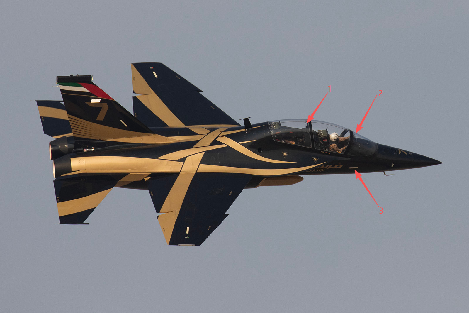 涂装就是战斗力,阿联酋L-15表演机这涂装太漂亮了。经过判研,之前网上出现的这架黄皮L-15改进型同阿联酋这个版本几乎一样,后座增加了平显,侧面夜间编队灯,不过没有装加油管。