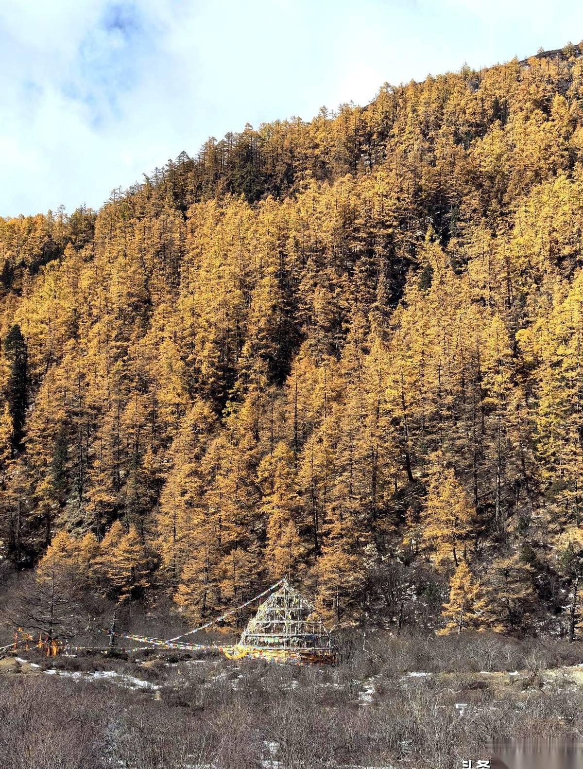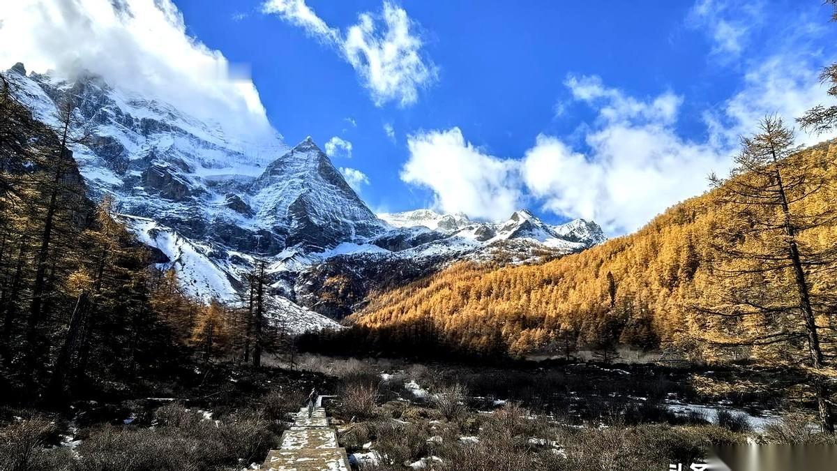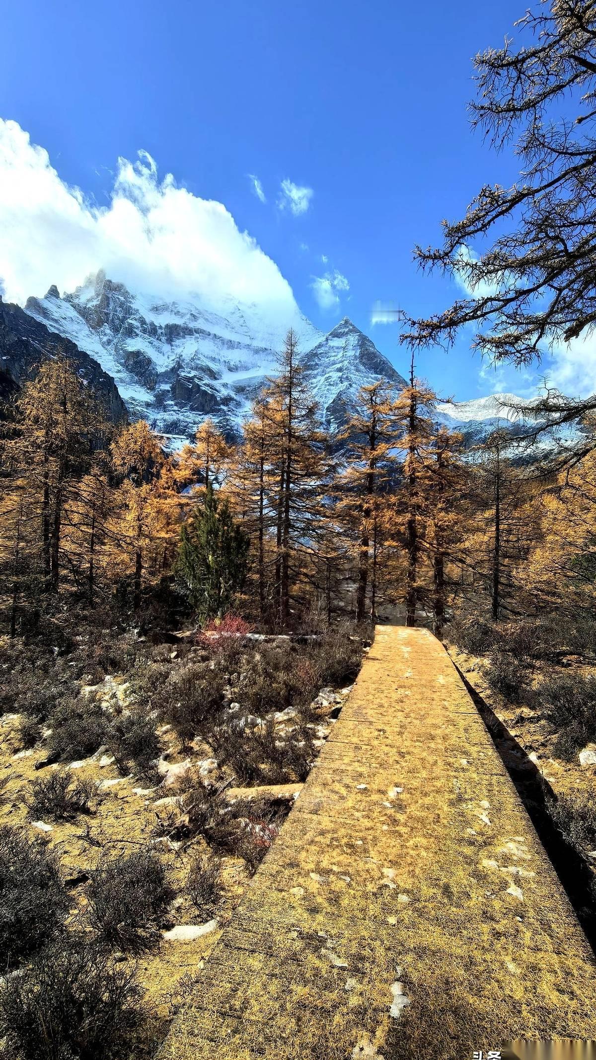 脸都肿了,但我还是想把亚丁的这片云揉进眼睛里。 真的,我跟你说,感冒越来越重,脑子嗡嗡响,但我还是天不亮就爬起来,冲进了景区。 就我一个傻子。 整个短线,包场了。前两天还要排队的机位,今天我想怎么拍就怎么拍,拿着自拍杆跟仙乃日“眉来眼去”了好半天。大喇叭里循环播放着金刚线关闭、门票优惠的消息,听着都觉得像是我一个人的专属背景乐。 你说好笑不好笑。 身体在地狱,眼睛在天堂。这种感觉太分裂了。 等我慢悠悠往回挪的时候,大批睡眼惺忪的年轻人,才刚刚进来。 那一刻,我心里居然有点小得意,嘿,你们错过了全世界最安静的日出和云海。 下山更绝。 坐车坐到最后一排中间,盘山路差点没把我魂给绕出来。 但一扭头,窗外那片金色的彩林,哗一下,从山谷铺到天边。我瞬间就觉得,值了,吐也值了。上山那天天黑错过的风景,老天爷今天加倍还给我了。 长线天气不好,牛奶海没看到最美的样子。 也好。 人生嘛,哪能让你一次就看个够本儿。 总得留点念想,给自己一个再回来的借口。 对吧?