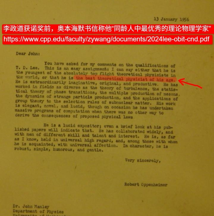 李政道的成就为什么不如杨振宁? ------------------------------------ 国外找不到任何一家权威媒体和专业机构说杨比李高,但管理过两者的奥本海默对李的评价极高。