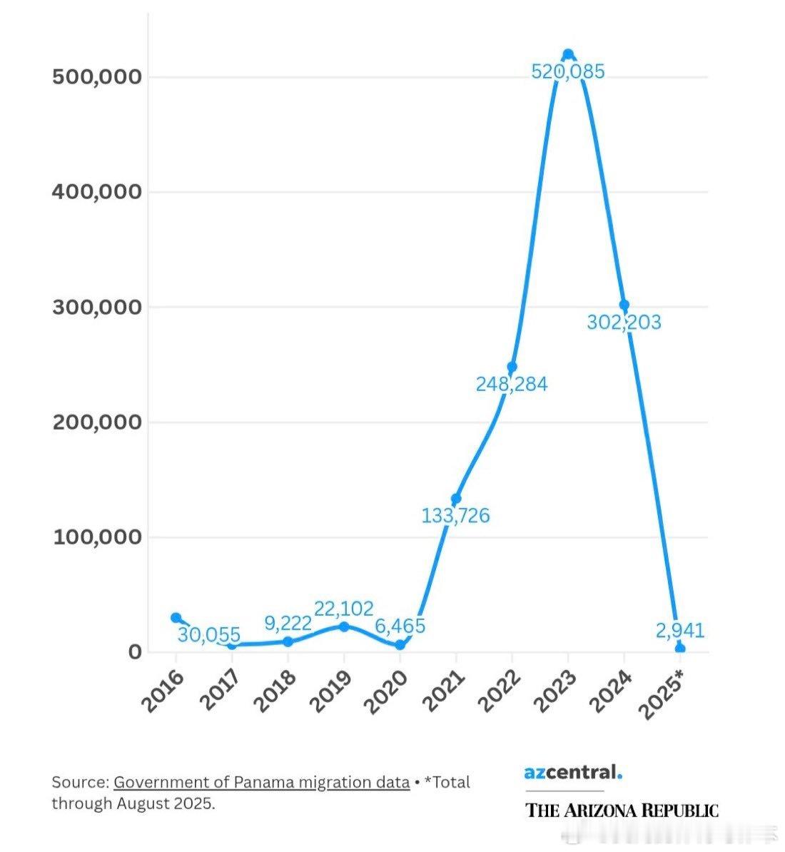 【黄金时代】一张图就能展现川普边境政策的成效。穿越极其危险的达连隘口的移民人数:2022年:248,2842023年:520,0852024年:302,2032025年:2,941(!!!)下降了近100%。达连隘口位于哥伦比亚和巴拿马之间;对于那些渴望进入美国的非法移民来说,这是一条充满危险的路线。