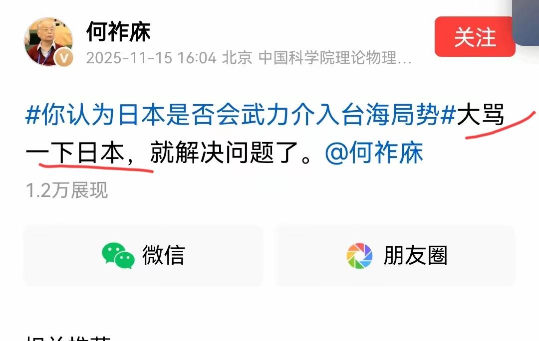 这种论述完全不能接受。 不知道的,还以为他的退休工资是日本给他发放的。 任何试图想给日本洗白的人,都要想一想自己是谁。 哪怕祖上是包衣、是买办、是反动派、是带路党,也要清楚是新中国给予了你现在的一切。 自己能过上美好的生活,是因为中国发展的越来越好了。