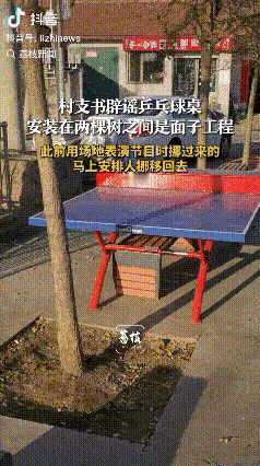 面子工程?北京,一乓兵球桌被放在两棵树中间,被人怀疑是面子工程,对此村支书就站出来辟谣表示,这桌子是可以活动的,上次演节目的时候要用场地所以才挪到边上的,马上安排人去挪过来。 善于发现问题,敢于反应出来这点很值得提倡,但是有些事还是要弄清楚,乒乓球桌下方并未固定,而且乓兵球桌下面还有一个长凳子,很明显就是被挪动造成的。 放运动器材也是为了让大家闲暇时间锻炼身体,这也算是村里的一个福利,这种可移动的也是非常方便,随时可能哪里需要哪里搬。