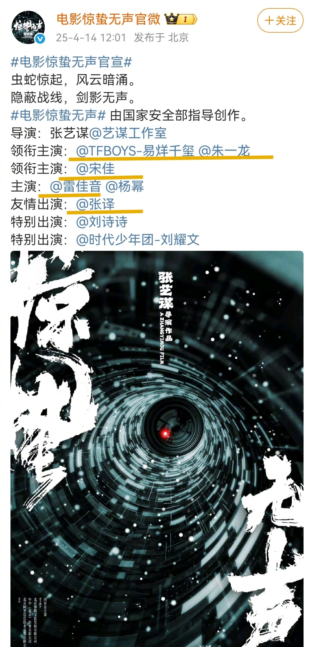 再看老谋子《惊蛰无声》阵容金鸡影帝x4 + 金鸡影后x1,还配仨流量这波演员明年颁奖季一封二封三封都有戏哈~