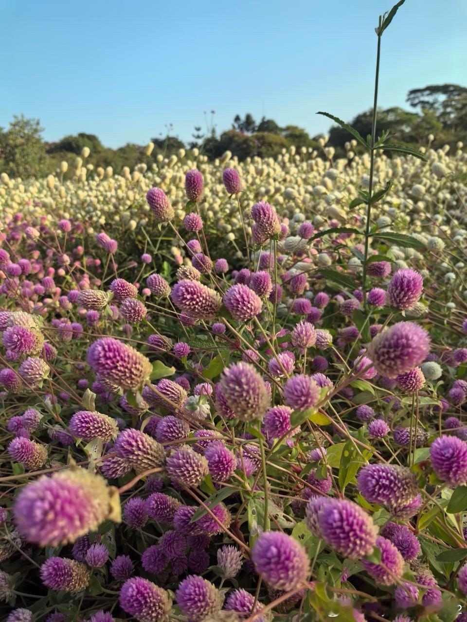 被这粉雾撞了一个满怀,好漂亮啊!这景色太美了!
