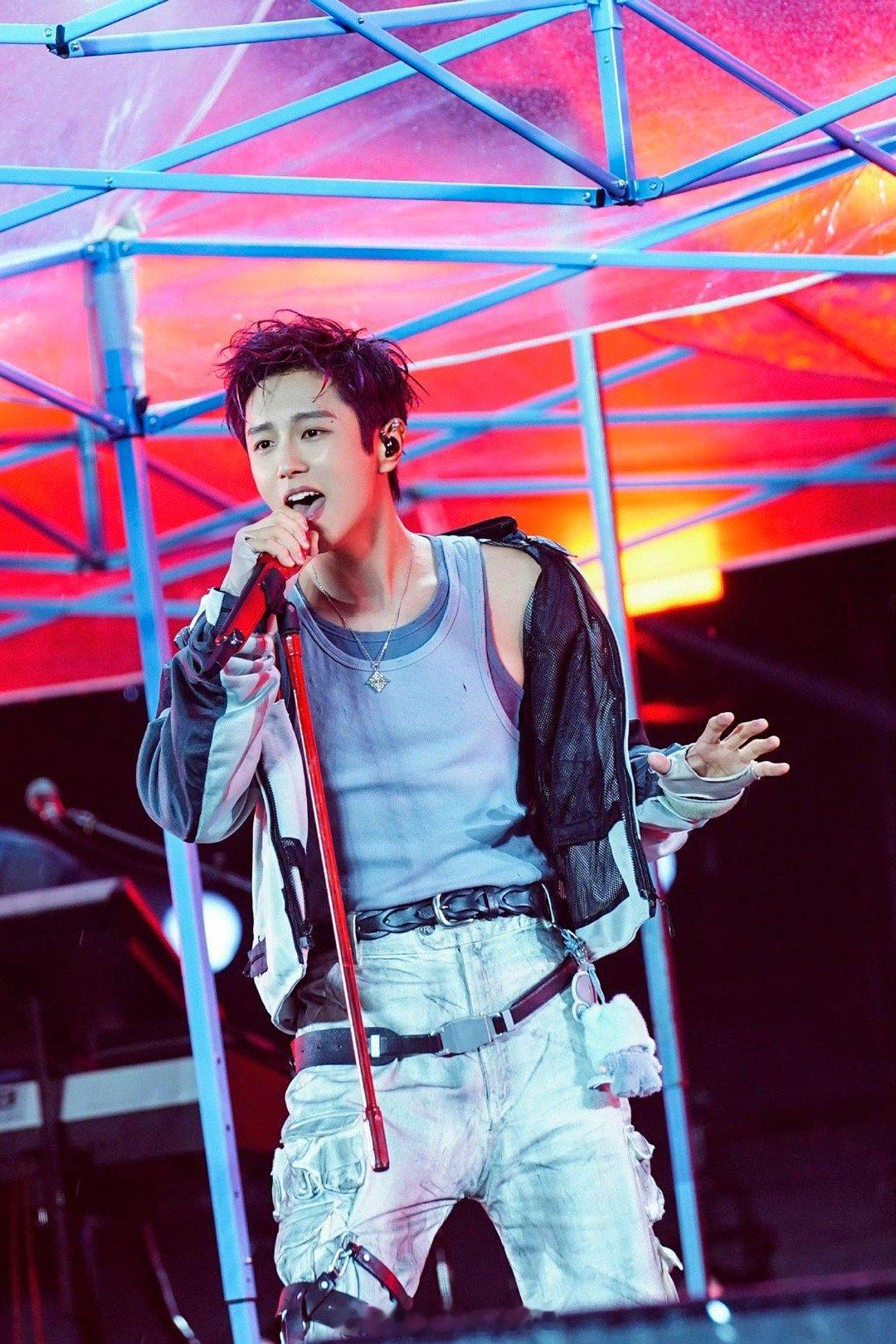 音乐节上的李汶翰是懂反差萌的!一身拼接皮衣酷飒全场,酒红发色帅到没边,结果腰间的“小鼻嘎”挂件瞬间破功~哥,你这帅气里非要加点可爱调味剂是吧!