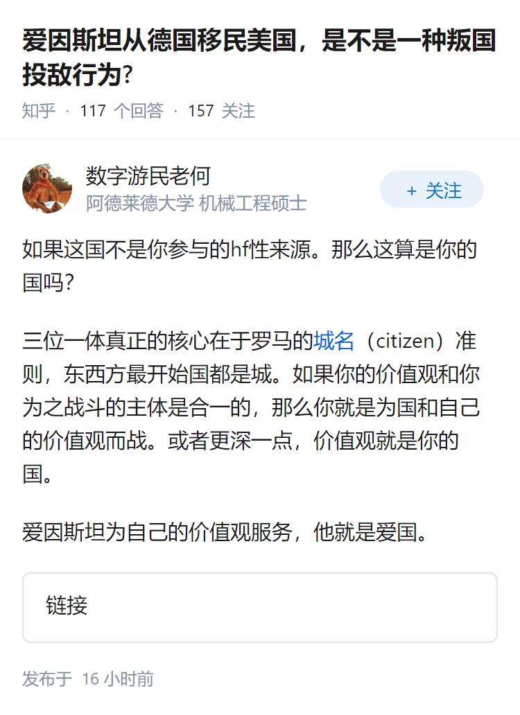 爱因斯坦从德国移民美国,是不是一种叛国投敌行为?