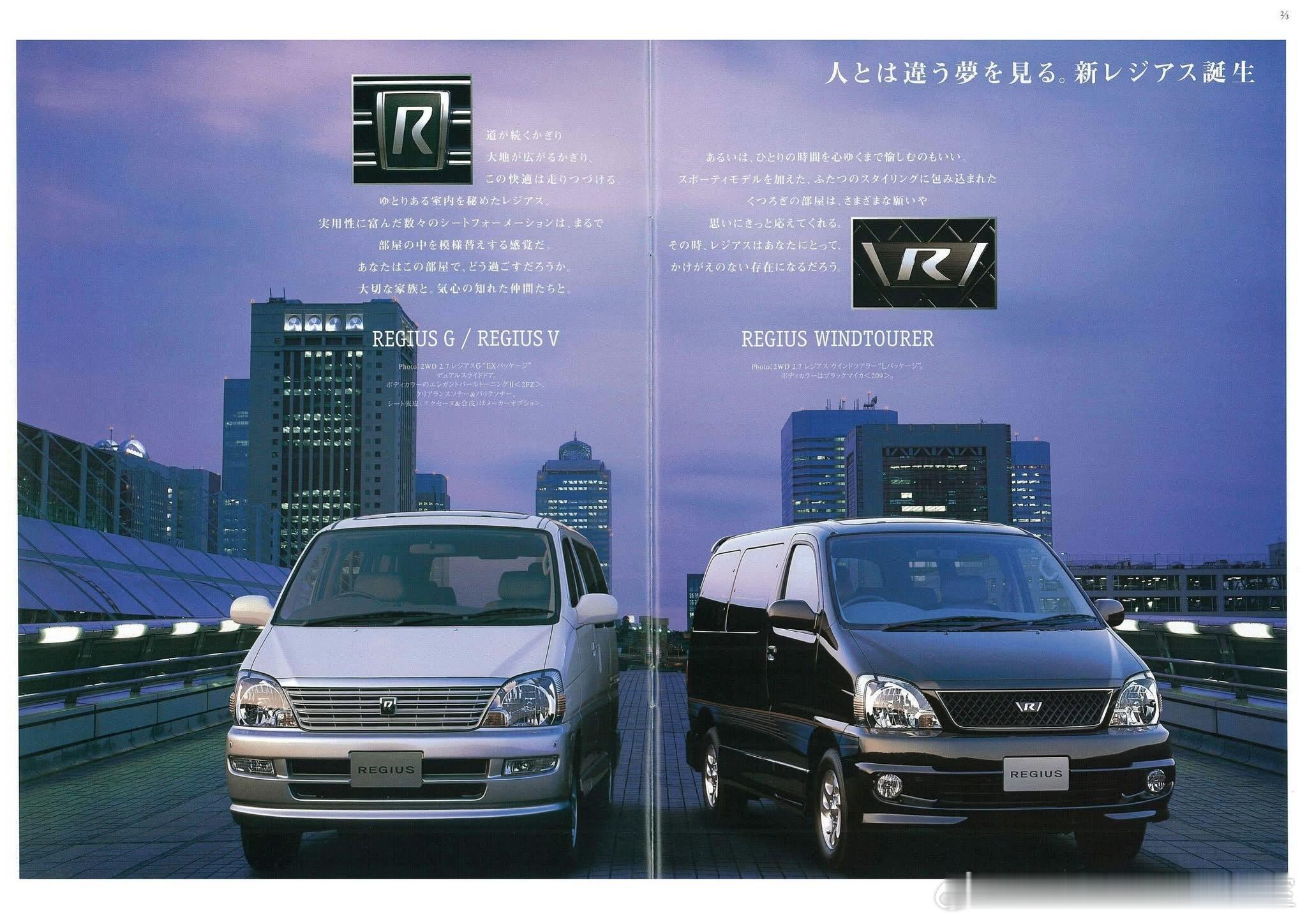 原来,金杯格瑞斯原型车还有一个亲兄弟,2002年的丰田Regius是一款MPV车型。它基于丰田海狮(Hiace)平台打造,也被称为Hiace Regius。丰田Regius并非直接等同于格瑞斯,但二者有着密切的渊源,格瑞斯可看作是它相关车型的国产衍生版本。丰田Regius是1999 - 2002年为日本市场生产的豪华MPV,基于丰田Granvia(格兰维亚)打造。他比我们熟知的格瑞斯更豪华更高级,而国内华晨金杯的格瑞斯,是以丰田Granvia为原型车,在官方授权下引进生产的车型。Regius停产后,其原型车Granvia的技术和设计基因,通过国产化的格瑞斯得以在国内市场延续,早期格瑞斯还曾搭载与Regius同源的2.7L发动机等核心配置。