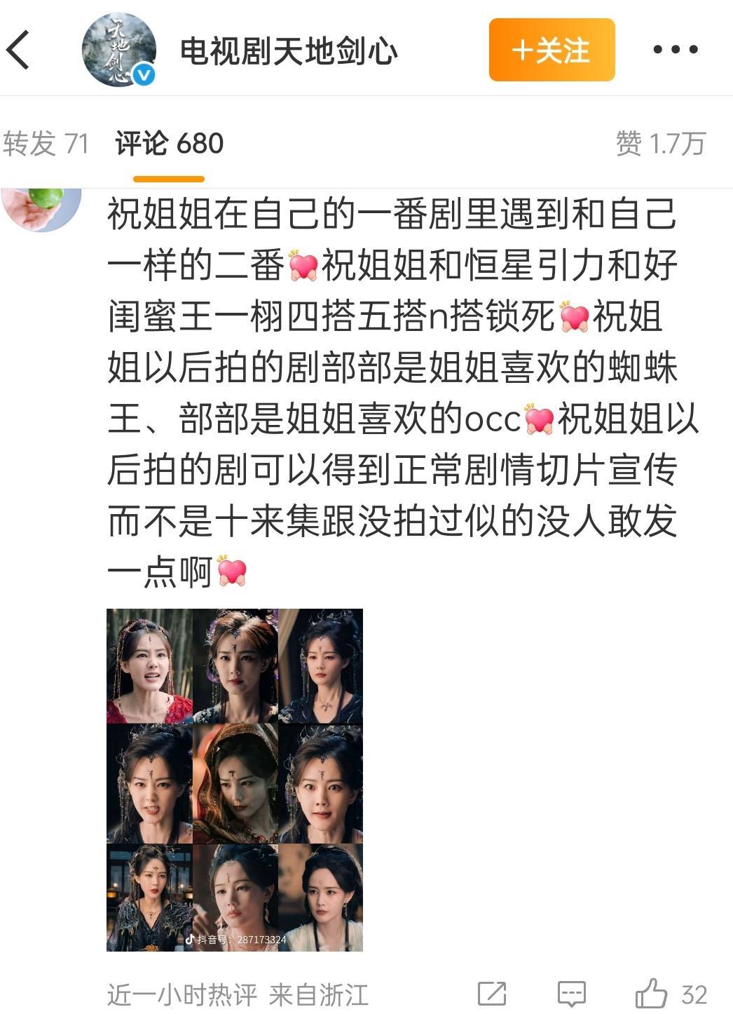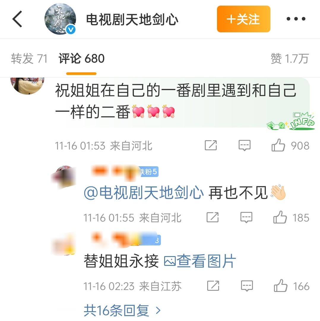 天地剑心的官博评论满屏rn词,豆瓣专组已变女主黑组