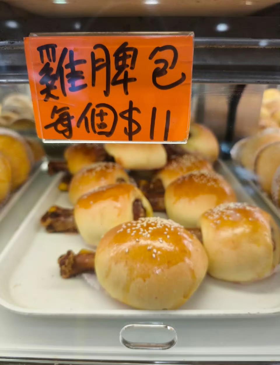原隻豉油鸡髀包,每次出炉只有12个,因此店外经常出现人龙,不少人更是专程为等鸡髀包出炉而排队。 店员表示最高记录试过一天售出超过800个鸡髀包。 店名:協香麵飽西餅 地址:粉嶺聯和墟聯盛街24號地舖