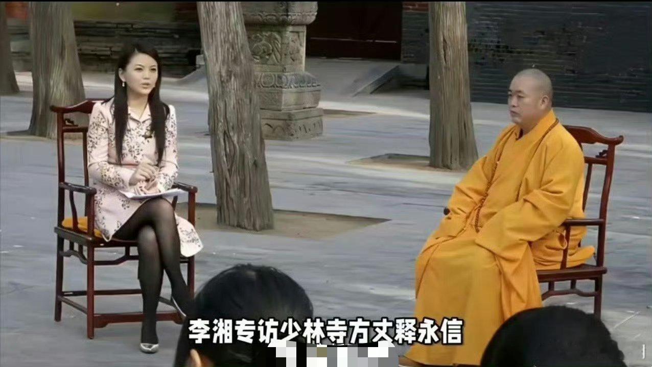 后来湘姐回应了!当年她穿高跟鞋,粉色短裙采访释永信。很多人都在场,只是一场普通的采访,现场的永信大师也很拘束,一直不敢直视李湘。🙅