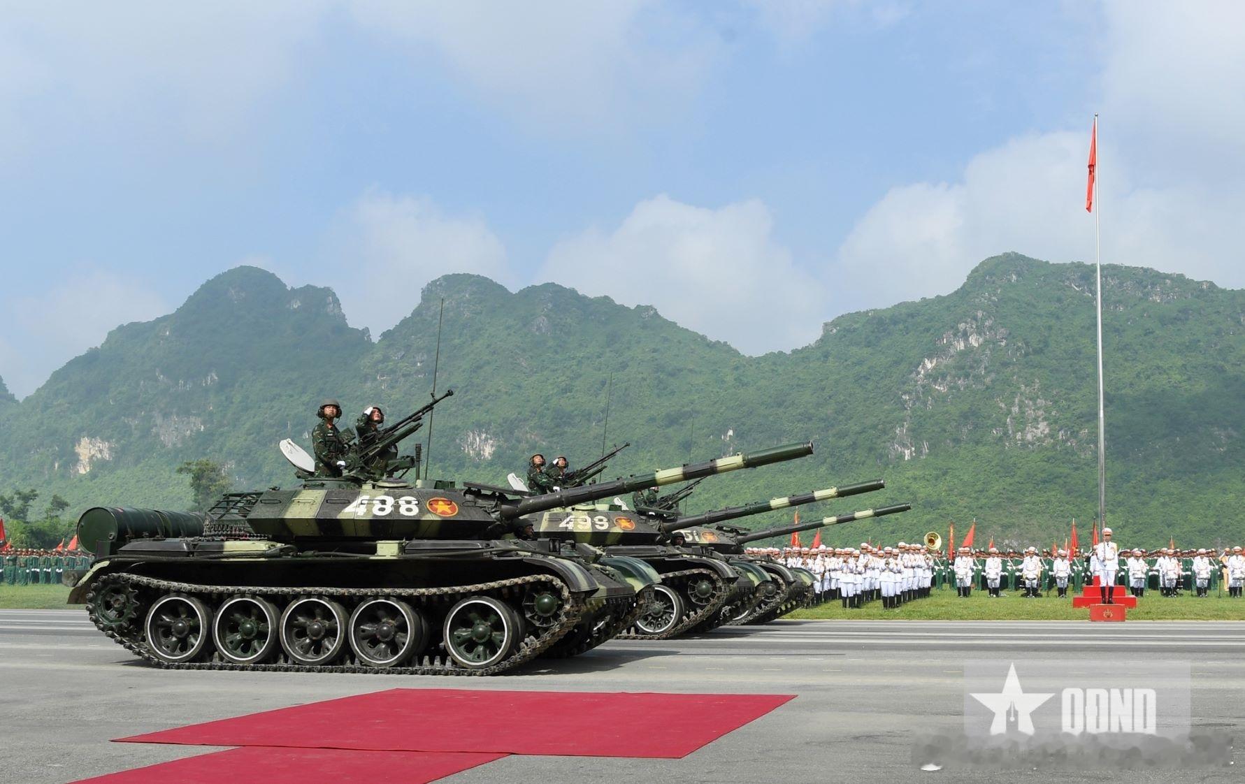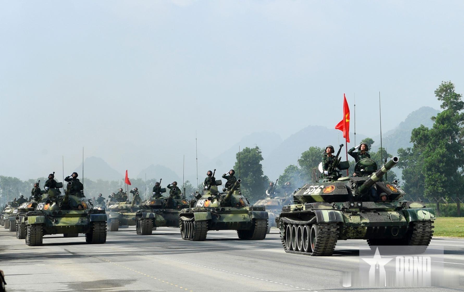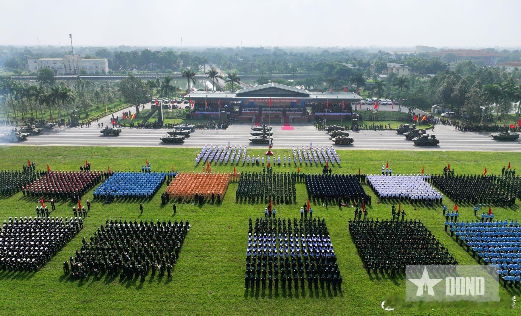 2025年7月17日越南为庆祝八月革命胜利暨九·二国庆80周年,越南人民军现代装备在四号国家军事训练中心参加阅兵、游行总彩排。这是装甲兵组图