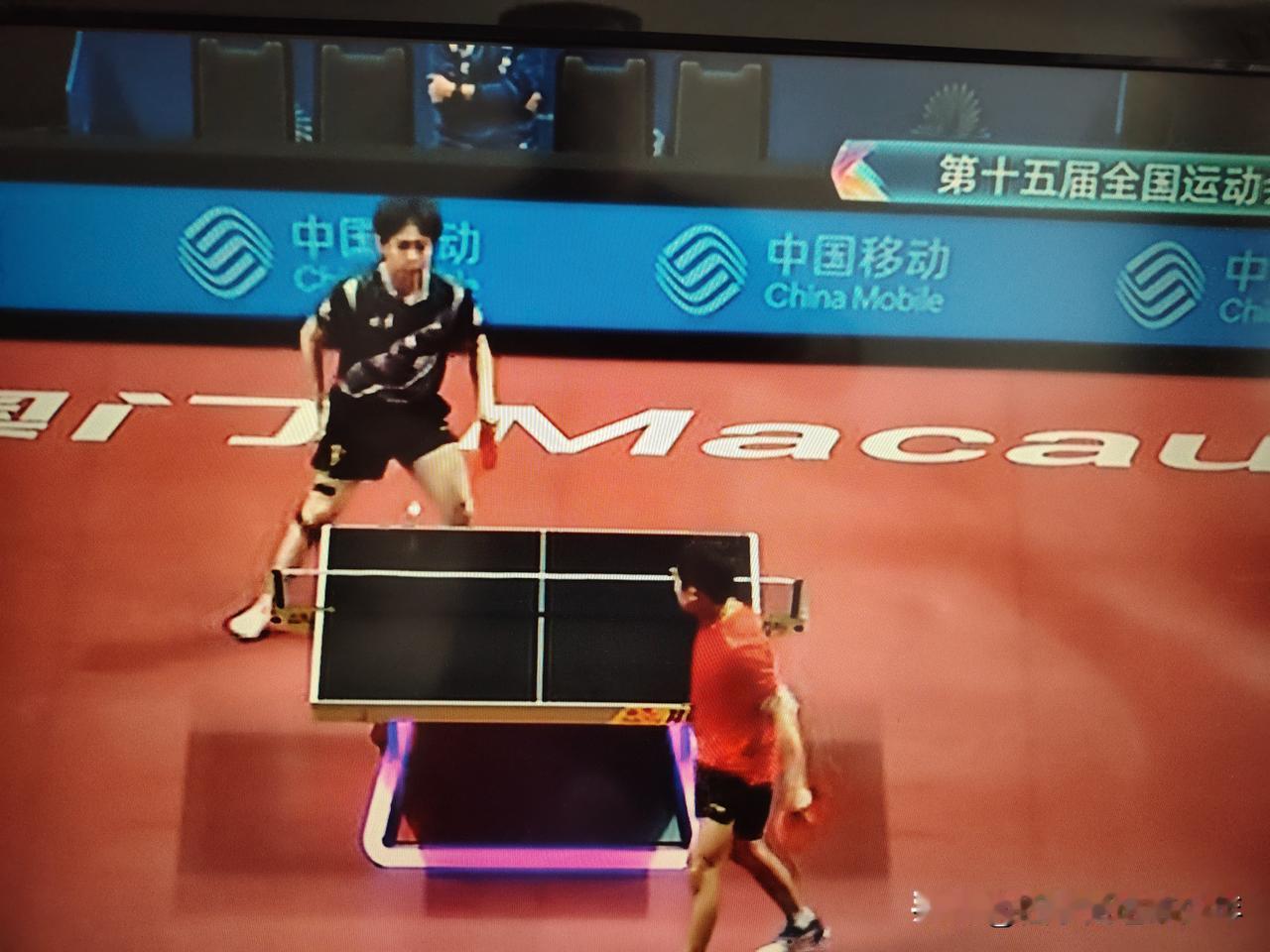 第十五届全运会乒乓球男单铜牌争夺战:王楚钦VS袁励岑。 第一局王楚钦4:3领