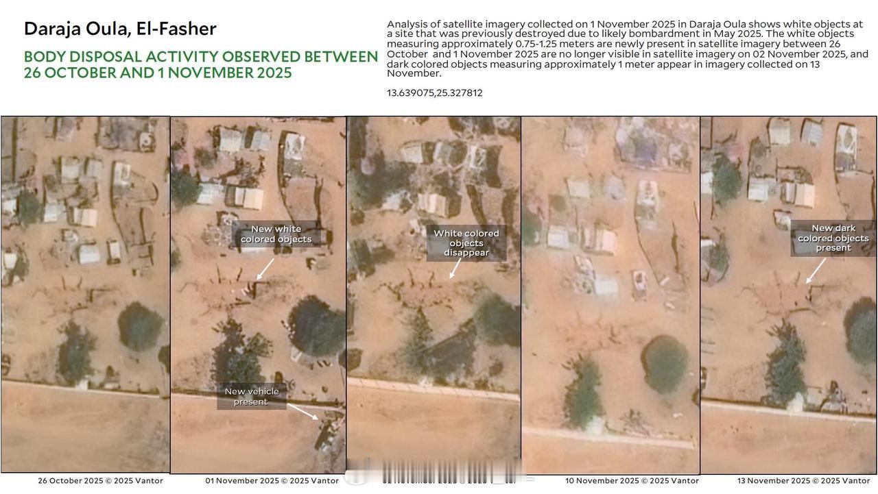 苏丹叛军“快速支援部队”(RSF)制造法希尔大屠杀引发国际公愤 通过卫星地图在苏丹法希尔市及其周边地区又新发现了4处叛军“快速支援部队”的屠杀抛尸地点(图1-4)。据报道,由于近期苏丹叛军“快速支援部队”(RSF)制造法希尔大屠杀引发国际公愤,阿联酋政府正在美国展开游说活动,企图撇清其支持苏丹叛军“快速支援部队”RSF的责任(图5-6)。此外,阿联酋政府发布声明称将不允许通过其领土向苏丹进口走私武器,这大概也是某种舆论上的补救措施。