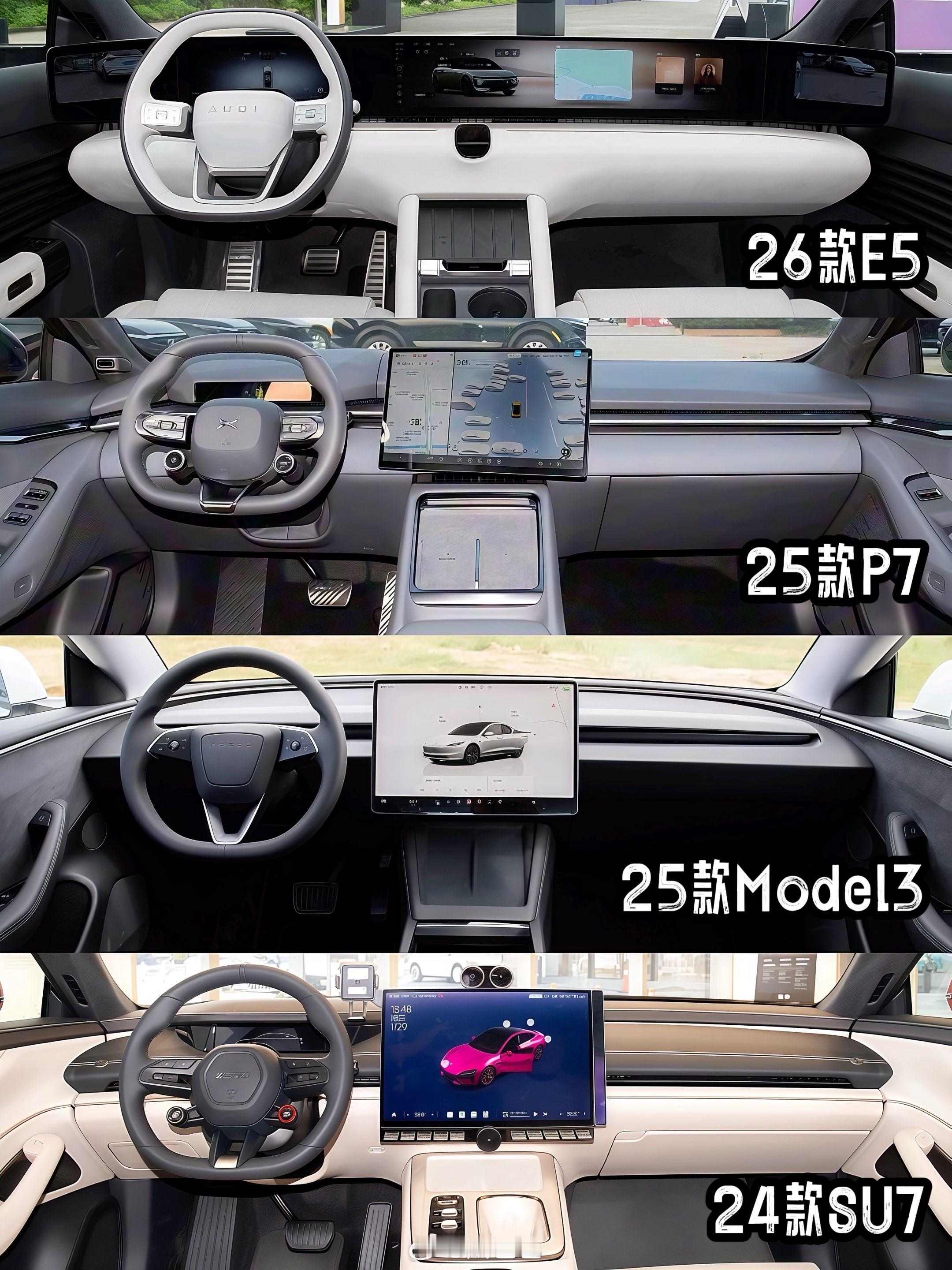 放到此刻,来让大家四选一:选Audi E5的一定是奥迪死忠粉了,就是打死不选择新势力的最保守群体;选Model 3的大概率是目前这个市场最主流的群体,追求一个不会错的中庸选择;选P7的群体纯纯是看着外观设计去的选SU7的群体不应该单纯的理解米粉,而是SU7早已把自己塑造成潮流科技流行的形象,年轻人不买SU7感觉就Out了
