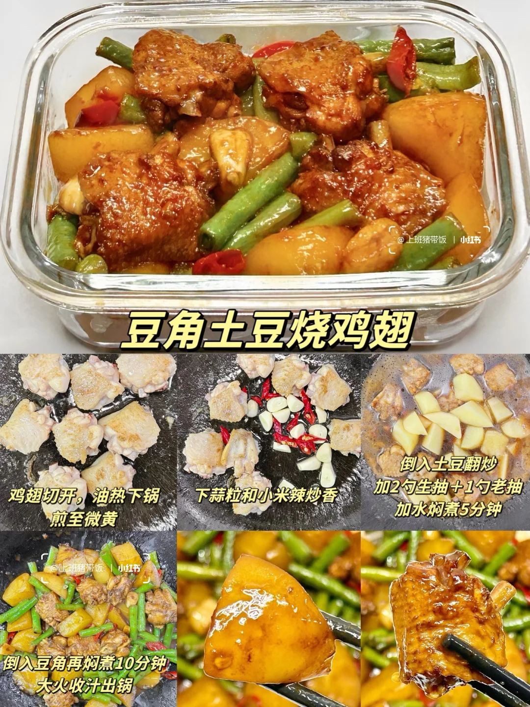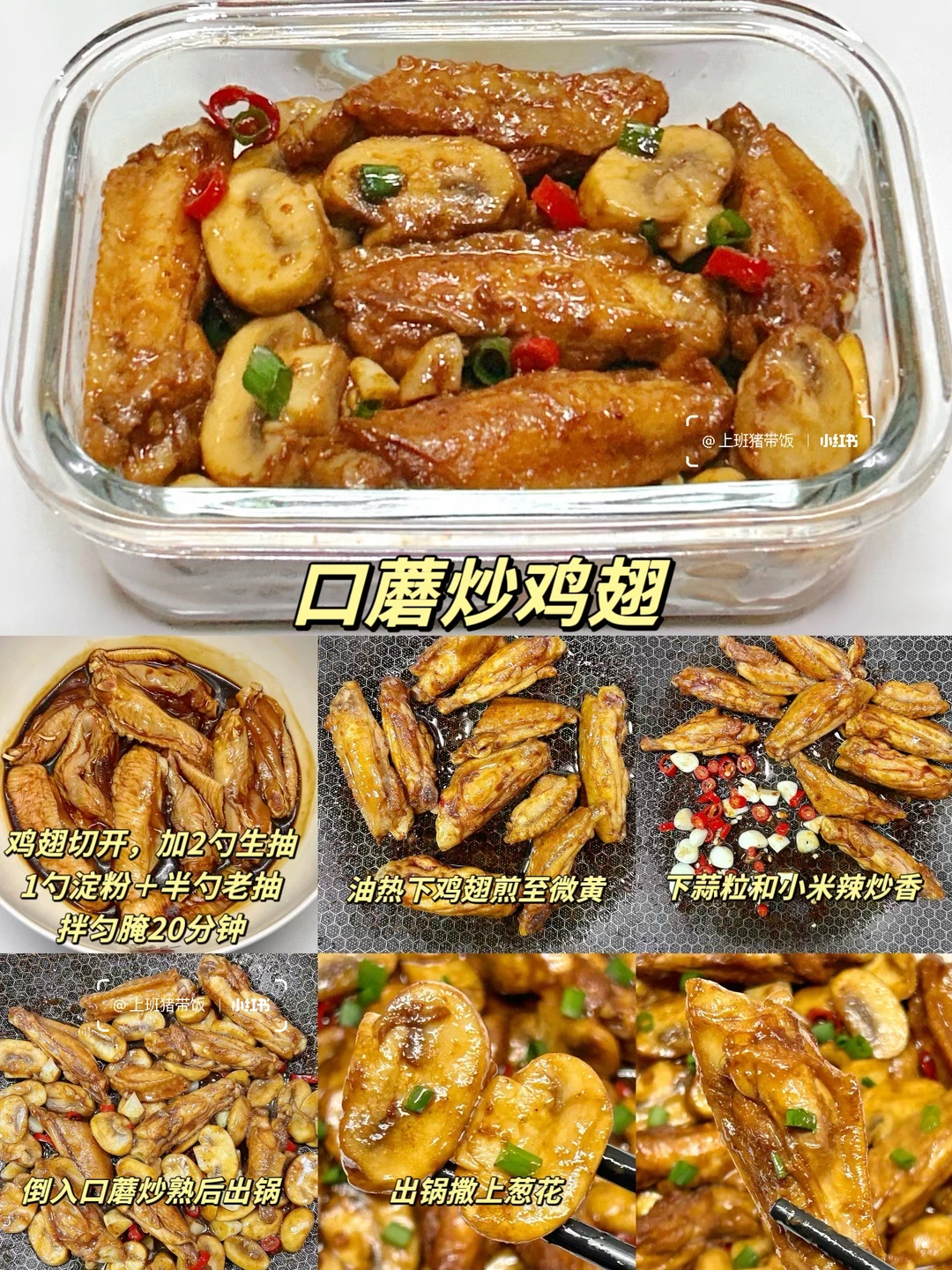今天给姐妹们整理了6道炒菜,简单好吃还能减脂,可比外卖强多了。早上起得来就早上做,起不来的就前晚做好放冰箱,早上带去公司放冰箱,中午微波炉高火热三分钟就开吃,哇,太香了~~~ ﹣ 一周隔夜菜合集 1⃣豆角土豆烧鸡翅 2⃣口蘑鸡胸肉 3⃣黄焖鸡 4⃣小炒鸡腿肉 5⃣口蘑炒鸡翅 6⃣口蘑炒肉