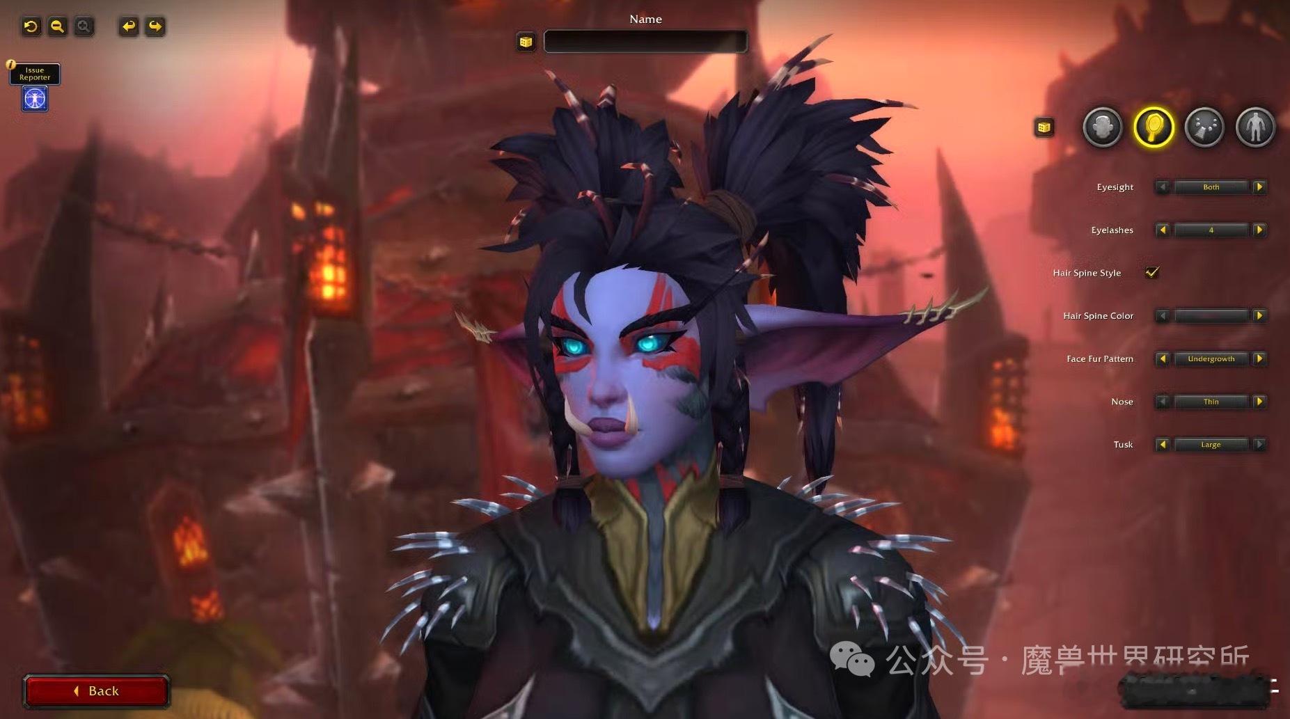 魔兽真正的亲儿子种族~哈籁尼尔!作为同盟种族,它拥有29 种自定义类别(体型 1 为 28 种),覆盖从基础到独特的全维度选择 —— 既有发型、脸型这类常规选项,更有专属的毛皮花纹,脊背尖刺甚至睫毛样式都可以定制。单发型就有 18 种,包含多款质感十足的黑色系造型,还支持挑染配色,眼睛更自带流光反光效果,视觉上比其他种族的静态眼妆精致太多。