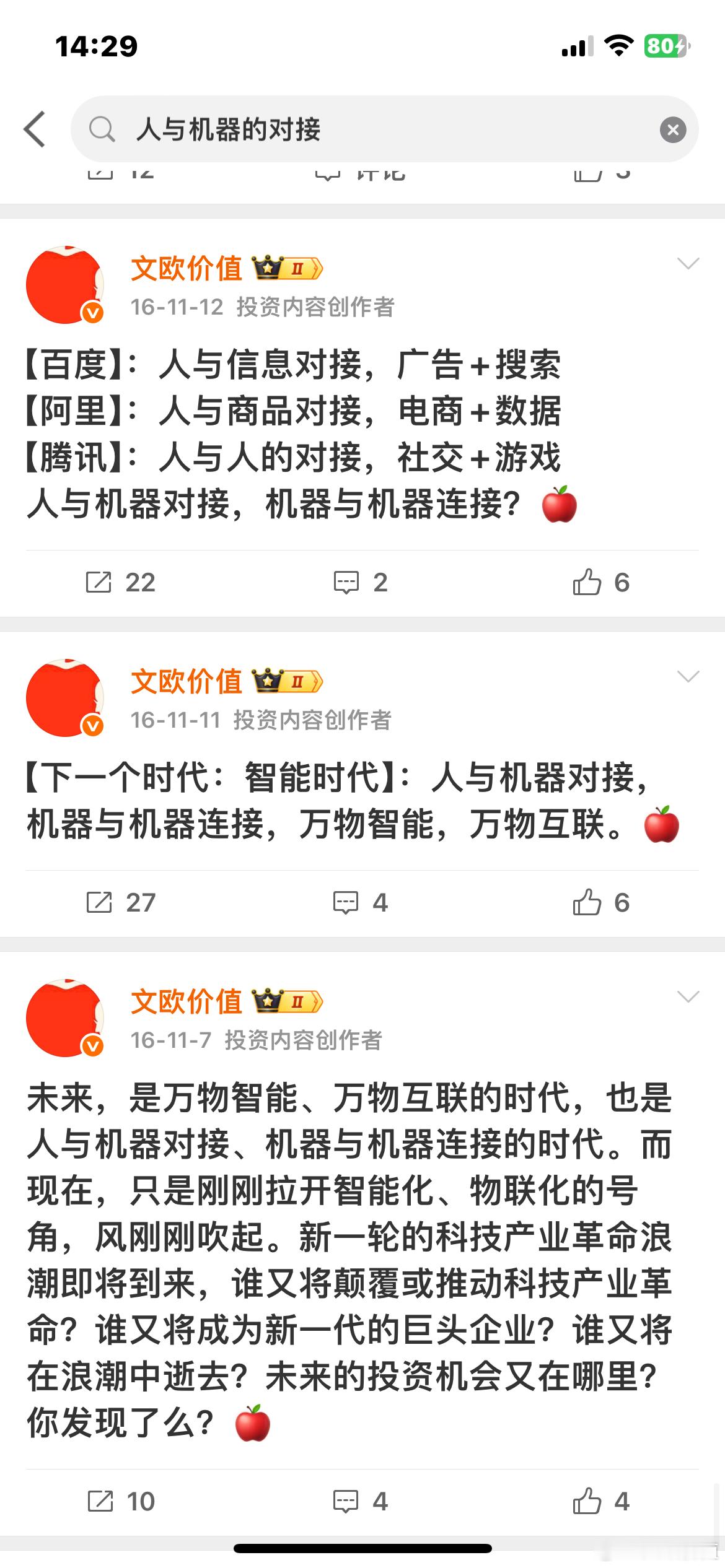 2016-11-11【下一个时代:智能时代】:人与机器对接,机器与机器连接,万物智能,万物互联。🍎 🌹