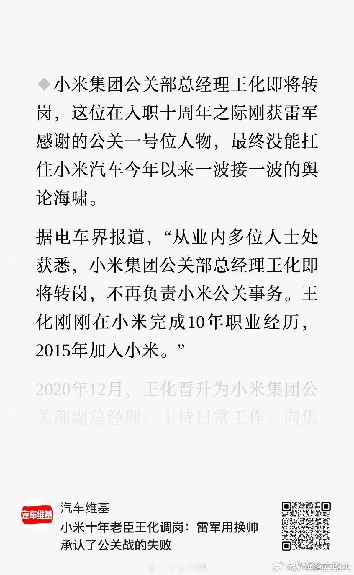 大V分享了一个月前小米就在行业物色寻找新的公关负责人今天雷总亲自下场发了多条辟谣