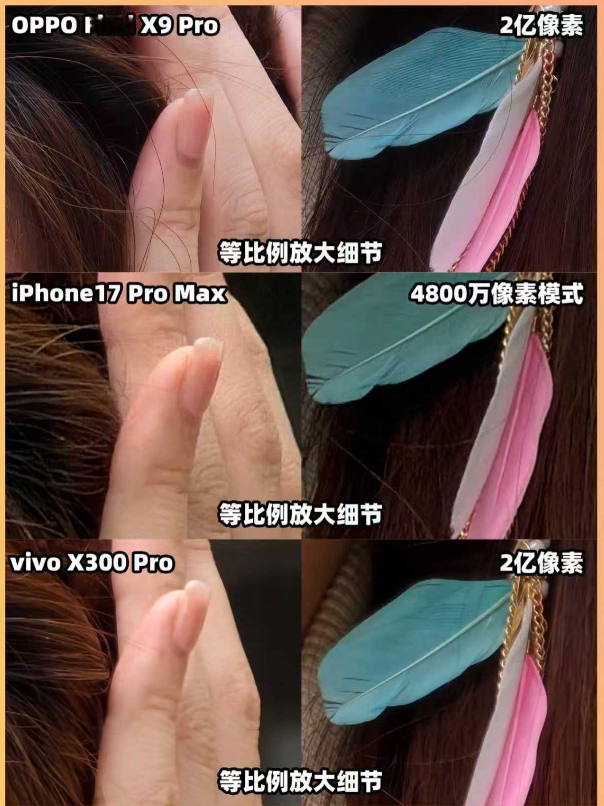 影像旗舰太难选?这不是一眼答案… 南方小土豆年底计划利用仅剩不多的年假,去趟大东北看看雪❄️,想着雪景+人像必须整个好看点的手机,做了好久攻略,目前锁定这三台:vivo X300 Pro、OPPO Find X9 Pro、iPhone 17PM。 我这两天疯狂刷实拍样张,总结下自己的肉眼感受👇 真的很纠结…大家觉得该选谁??? 1️⃣iPhone 17PM: 这一代iPhone17人气很高,苹果也稍稍注重美颜了,不过相比Ov无论是在美颜效果的成熟度上,还是4800万像素对比2亿像素的细节还原上,iPhone17 PM依旧有提升空间🤔 2️⃣vivo X300 Pro: 蓝厂的蔡司影像热度很高,人像拍摄也是深耕多年了,成像是那种一眼讨喜的效果,锐利感会稍稍突出一点,有人说风格属于那种偏数码的,我是觉得好看就行了,毕竟皮肤拍出来很白皙抢眼女生都不会拒绝吧?😂 3️⃣ OPPO Find X9 Pro: 哈苏真2亿加持下,在3张实拍样张中,我觉得放大后细节保留会更多一丢丢,更关键的是人像拍摄OPPO真的领先好多年了,那种出片的自然感独一份,据说这一代还有了Ultra级的丹霞镜头,所以唇色、肤色看起来都很自然,属于相机感📷风格,拍出妈生自然冷白皮。 说实话,拍照这块三台都能顶,就是风格不同而已。 🙋♀️我现在唯一担心的是:东北冷成那样,手机掉电好像会更快… Find X9 Pro这边有更大的7500mAh电池,出门拍照用一天会更稳妥,加上4K live拍雪景应该也更清晰、更有氛围感,确实让我有点心动。大家觉得哪台更适合我呢? 东北旅游 影像手机推荐 OPPOFindX9Pro vivoX300Pro iPhone17PM 年底换机攻略 拍照手机
