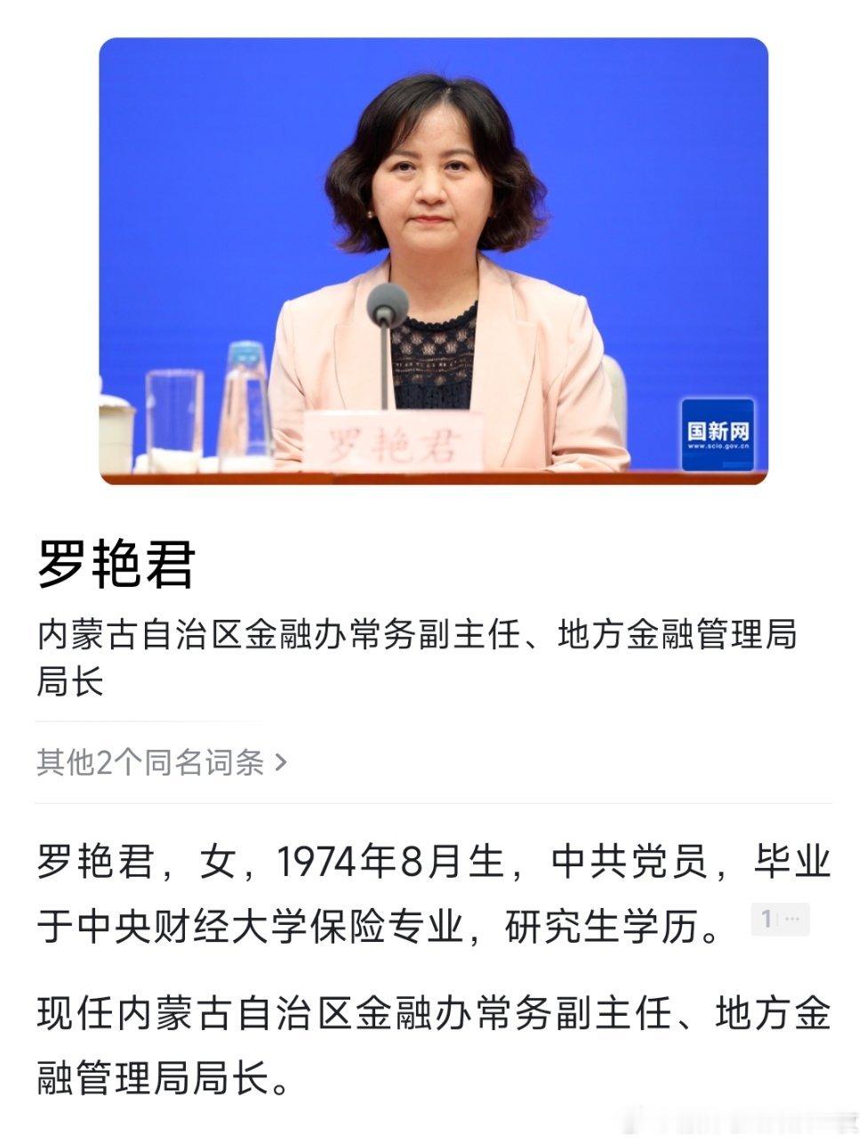 罗艳君已任内蒙古自治区金融办常务副主任、地方金融管理局局长。