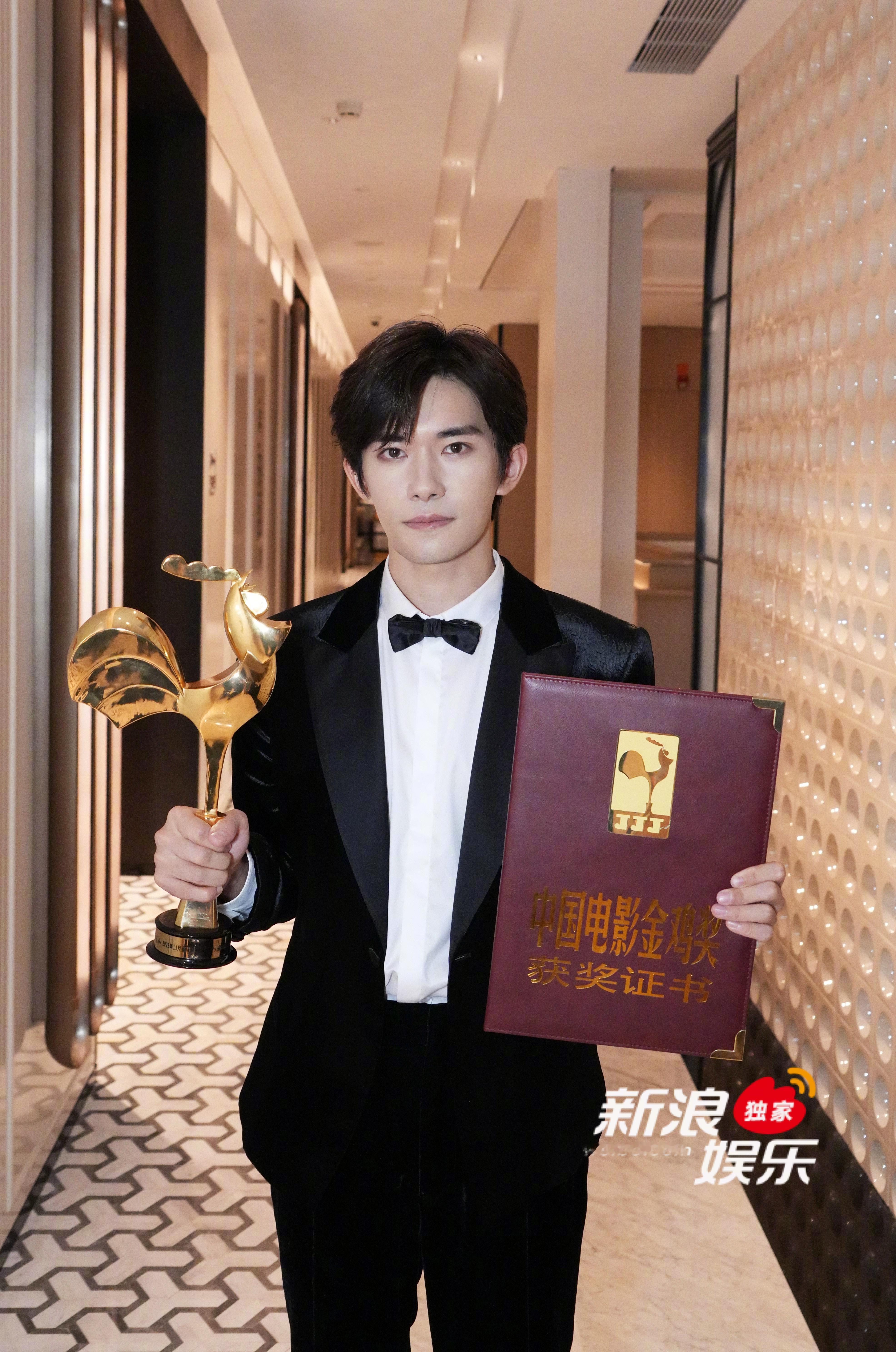 分享一组易烊千玺与最佳男主角奖杯、证书的合照,在采访后,我们记录下这个特别的时刻