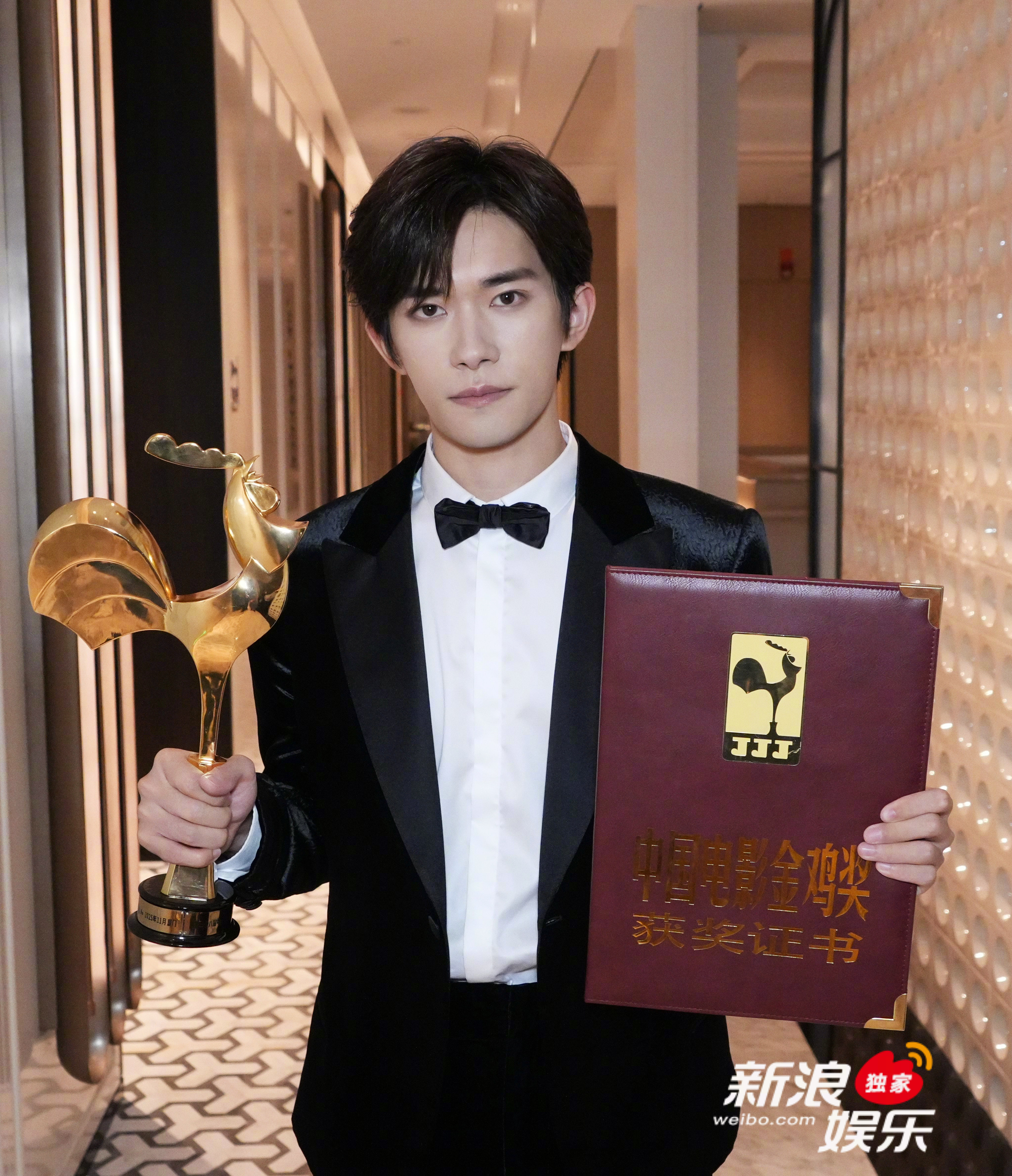 分享一组易烊千玺与最佳男主角奖杯、证书的合照,在采访后,我们记录下这个特别的时刻🏆