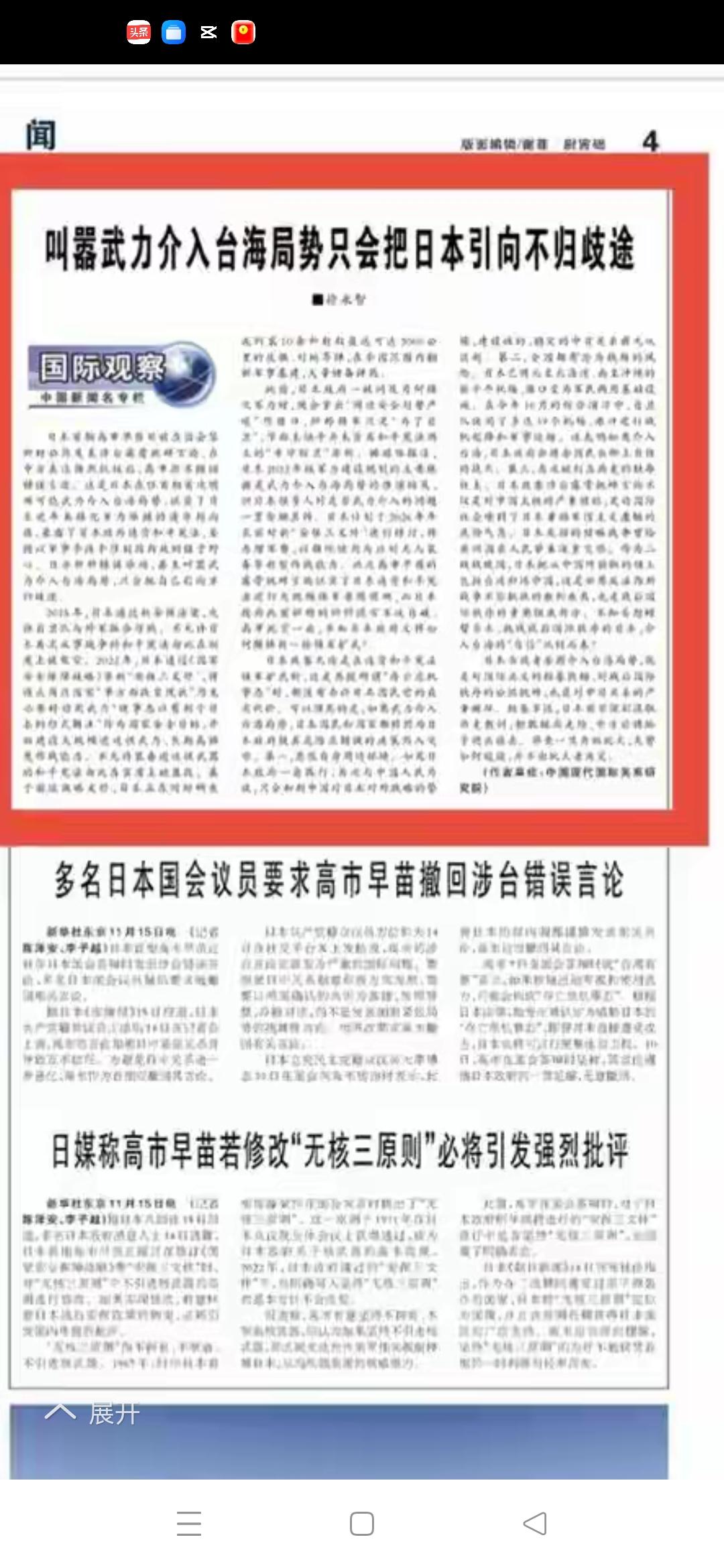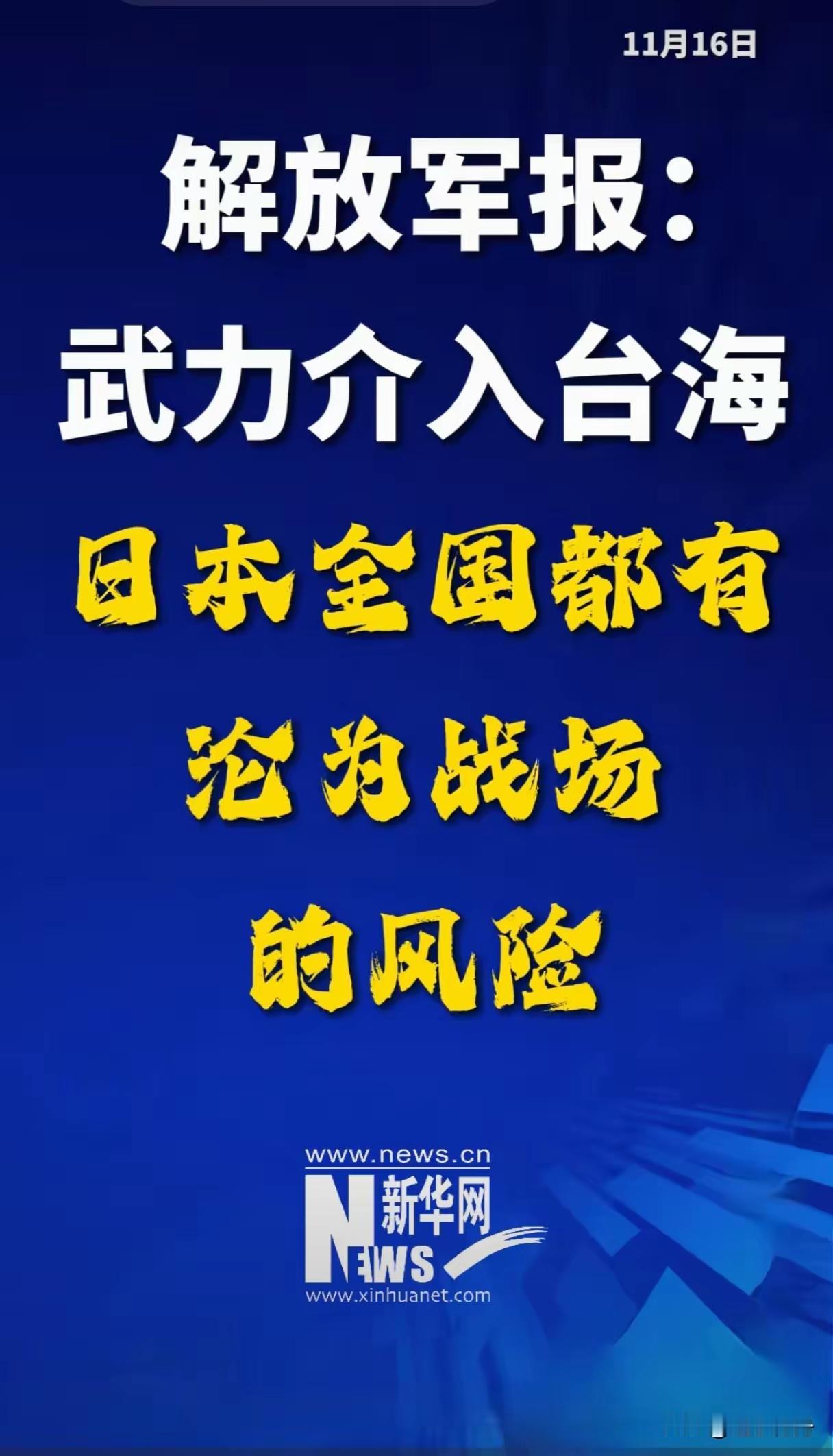 “全国都有沦为战场的风险”,这是《解放军报》对日本的强烈警告,也是我有记忆以来听到的第一次! 刚刚《解放军报》刊发评论,如果武力介入台海局势,日本“全国都有沦为战场的风险”。小小的日本列岛,从南到北分布着数十个军用机场,这都是解放军打击的对象。 君子报仇,十年不晚。我们的对手是日本右倾势力,高市早苗只不过是他们的代表。不彻底打败右倾势力,日本还会出现高市晋二、高市晋三。什么日本“存亡危机事态”,我看就是“死亡危机事态”,就是日本在高市早苗及右翼分子的疯狂推动下进入灭国事态! 日本对华态度 日美干涉台海 日本军事挑衅