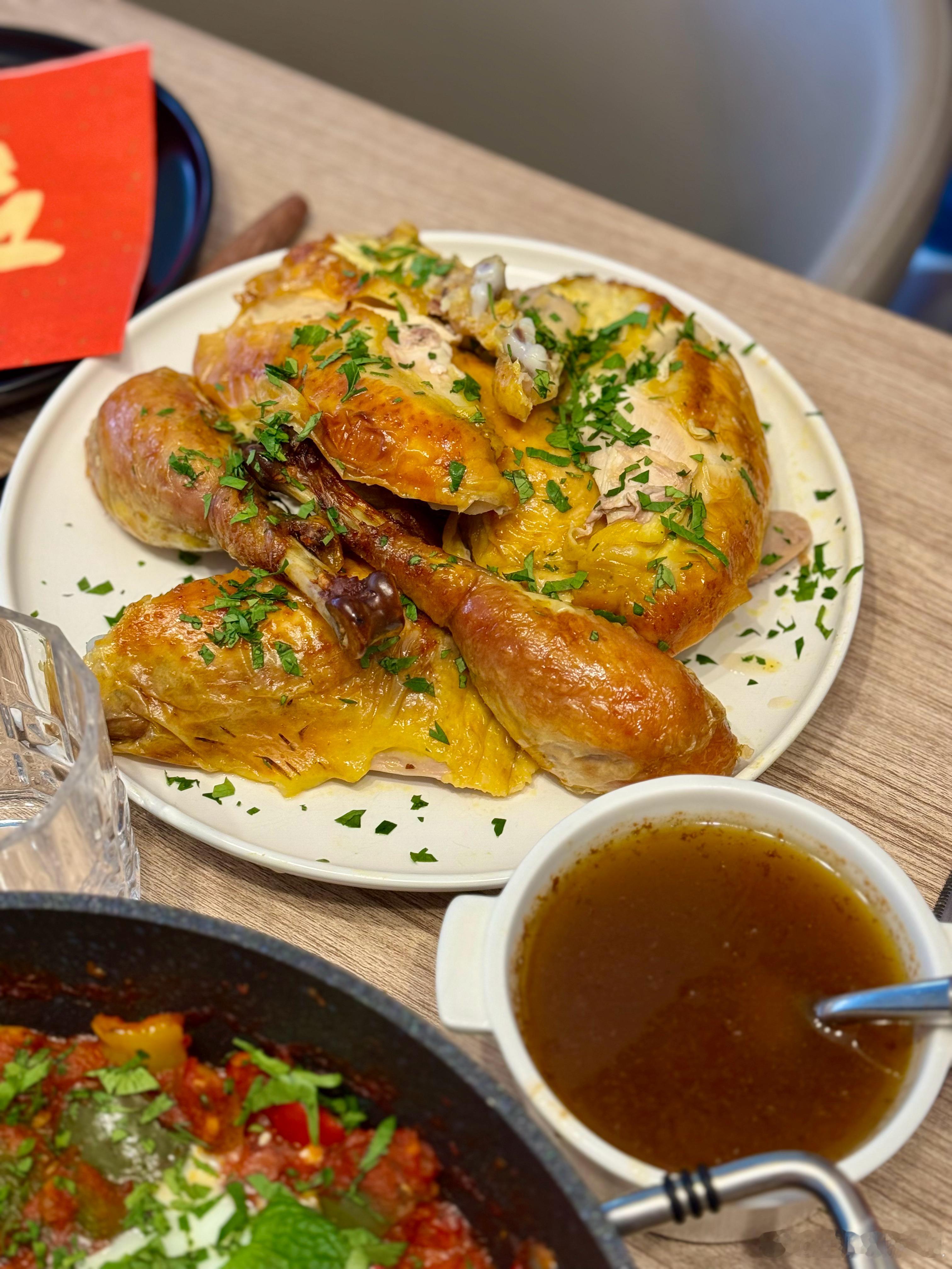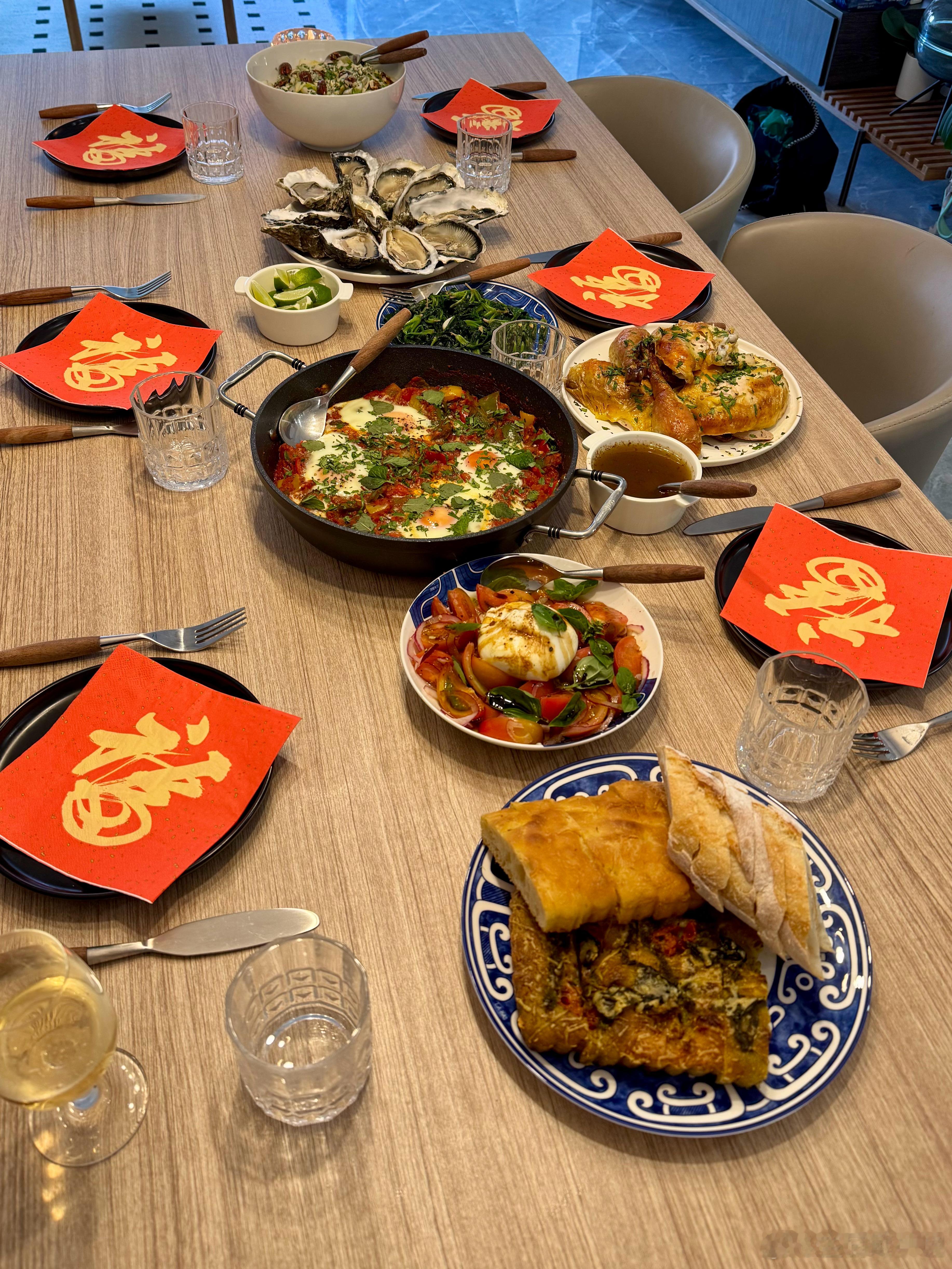 周日丰盛的家庭brunch:花式面包,法国生蚝,布拉塔番茄沙拉,北非蛋,法式烤鸡,蓝纹菊苣沙拉,黄油菠菜。吃完下午迎着秋天的阳光游览了美丽的苏州河,舒舒服服