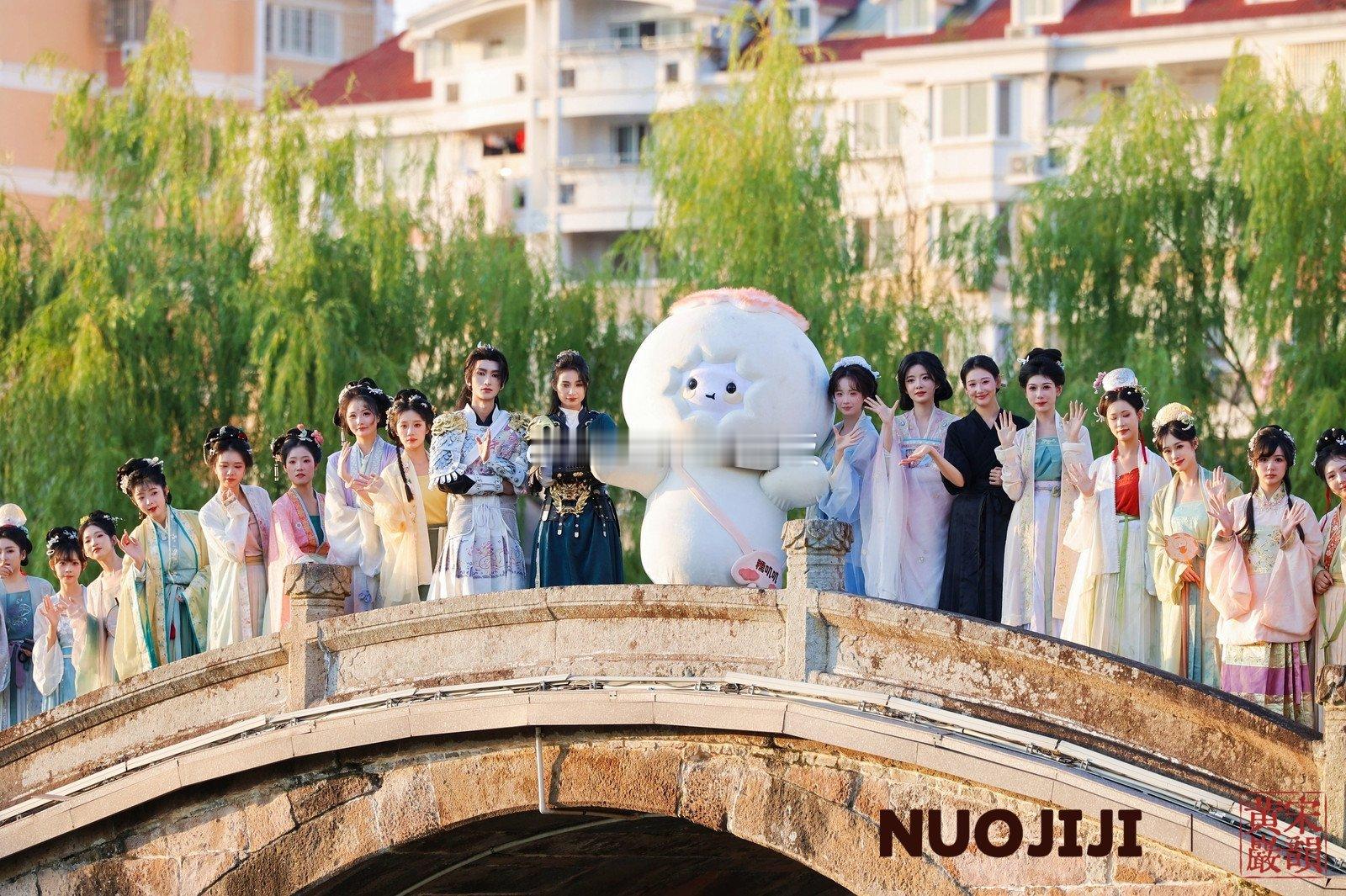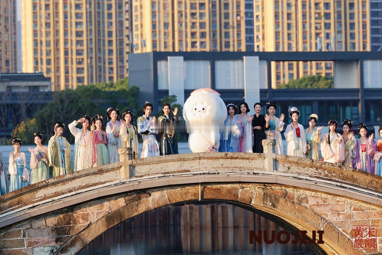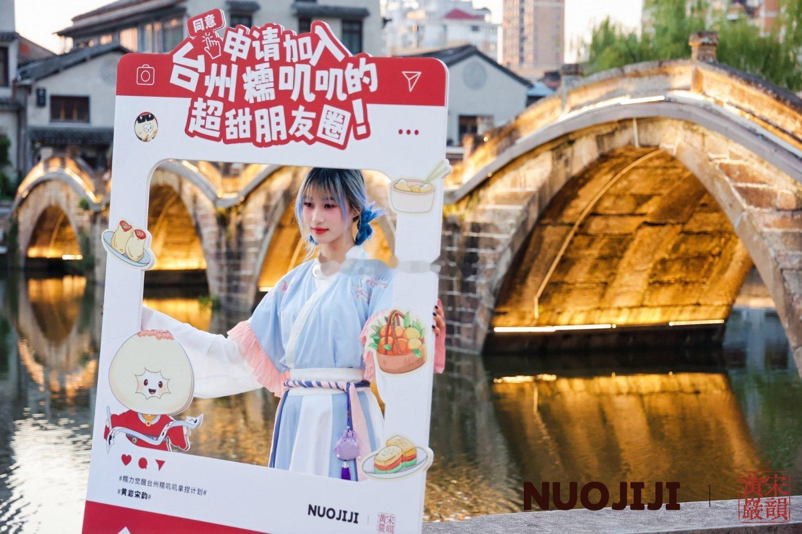 黄岩五洞桥这波古风与萌系的碰撞太绝了!百年古桥边,百人宋服队伍衣袂翻飞,青石板路上尽是雅致古韵;圆滚滚的台州吉祥物“糯叽叽”带着腮红软萌登场,歪头、挥手互动超吸睛,跟宋服小姐姐同框,古风雅致与二次元可爱瞬间拉满~作为“糯叽叽天堂”,台州的魅力藏在每一口香甜里:黄岩蜜橘清甜多汁,梅花糕、灰青糕软糯弹牙,烟火气十足;五洞桥的水光映着古建,随手拍都是穿越感。这场快闪活动太会玩,让千年宋韵借由软萌IP焕发新生,也让人真切懂了,爱上这里的美食与美景有多容易~