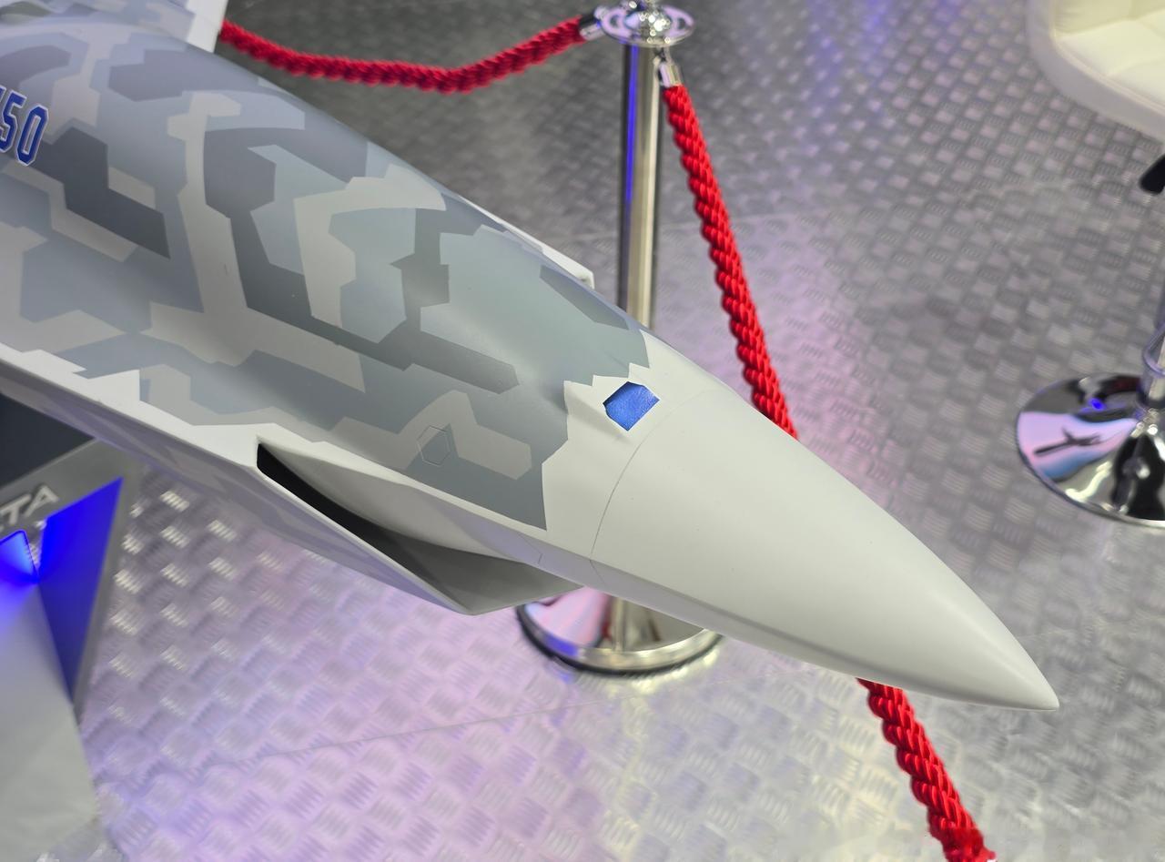 迪拜航展上苏霍伊展出的 LTA无人机,苏-75的无人版,由于没有组装完,所以尾部边条缺失了一块。图11是之前展出过的完全体烽火问鼎计划2025迪拜航展