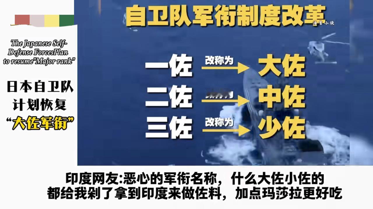 大佐的军衔称呼属于心理战。现在的日本人再也不藏着掖着了,他们兴奋开心,压抑了几十年的怒火要迸发出来了。 自卫队的军衔改革又出现了大佐,他们认为这是他们曾经的荣光,现在要重新拿回来。 战败,被压抑了几十年的日本普通民众,都想找一个解脱的机会。 可惜他们找错了对象,他们胆敢伸出肮脏的头颅,将被我们彻底的斩掉。