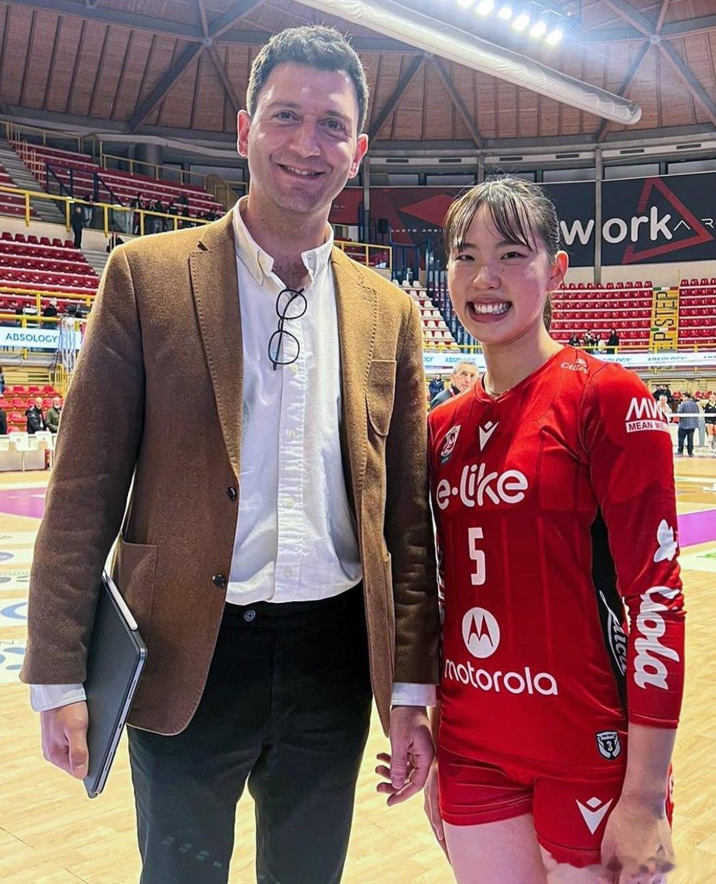 📸 费尔哈特·阿克巴什前往意大利的俱乐部探望了他在国家队的弟子——石川真佑和关菜菜巳。