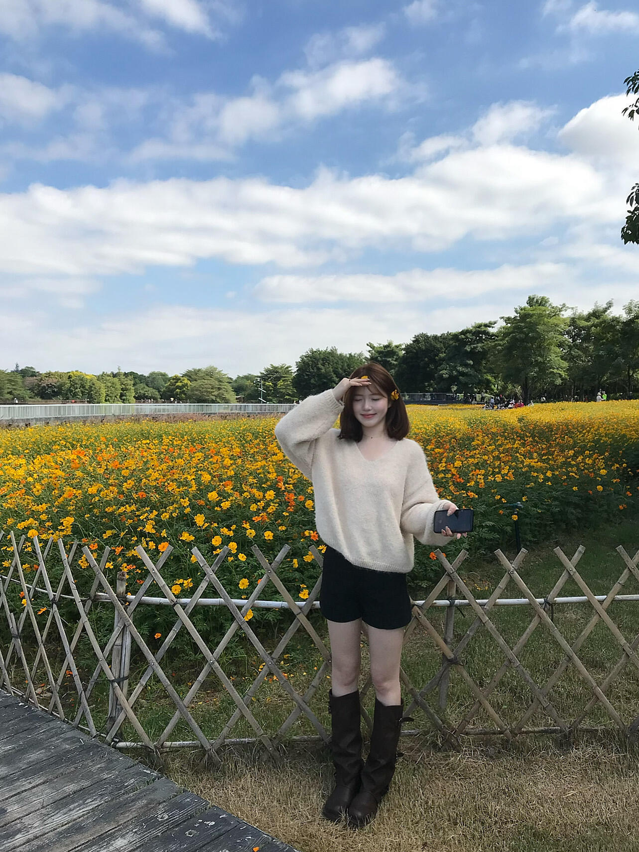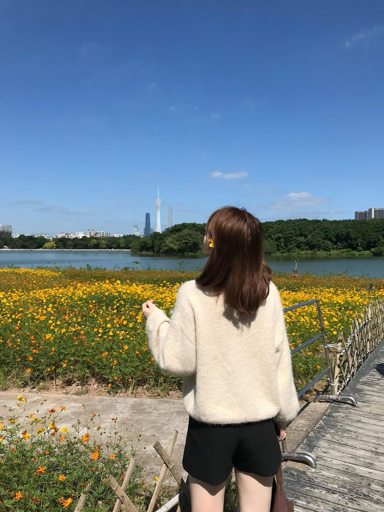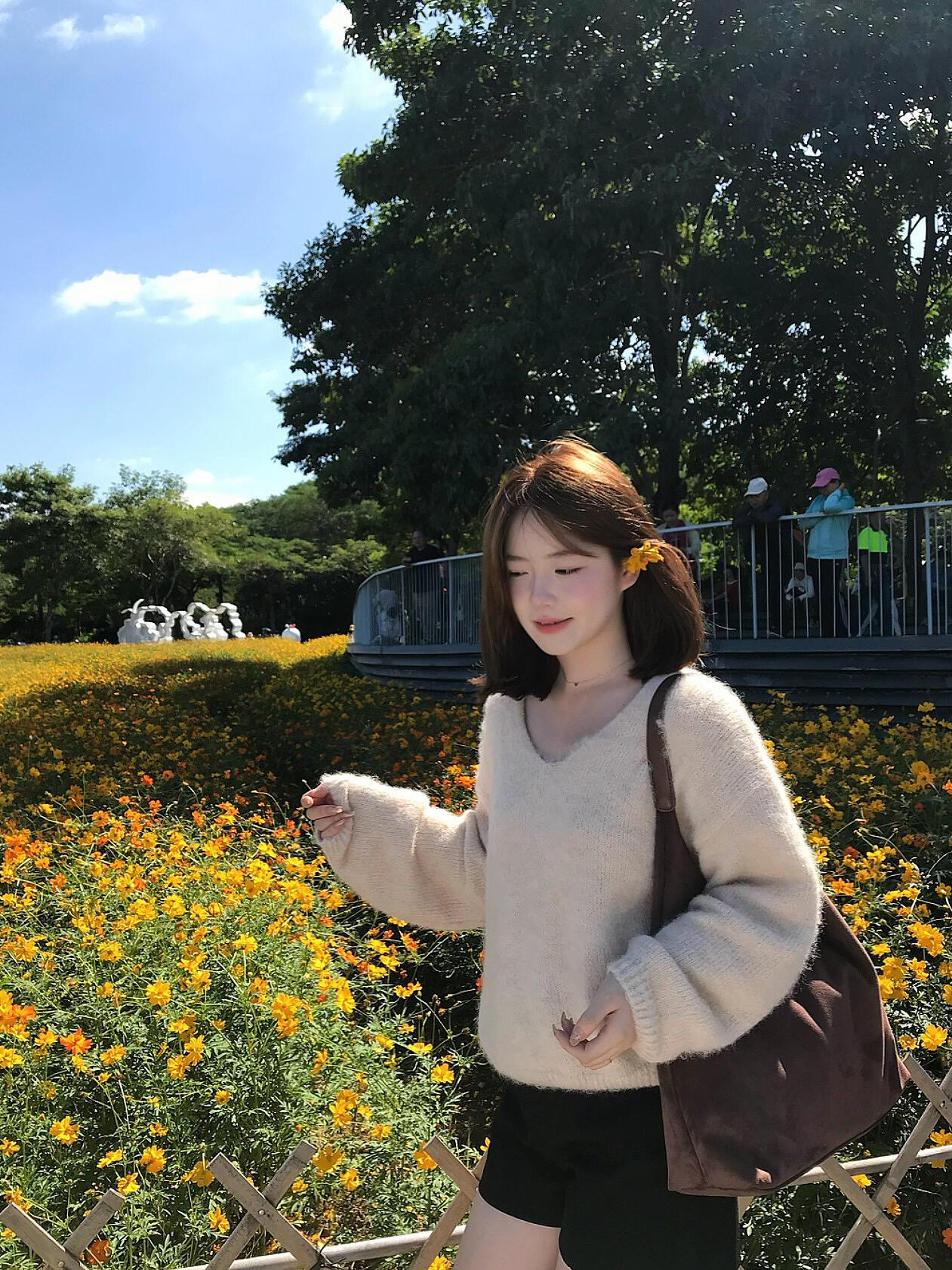 蓝色毛衣+牛仔裤,搭配米色帆布鞋,简约又时尚!🍂👟👗