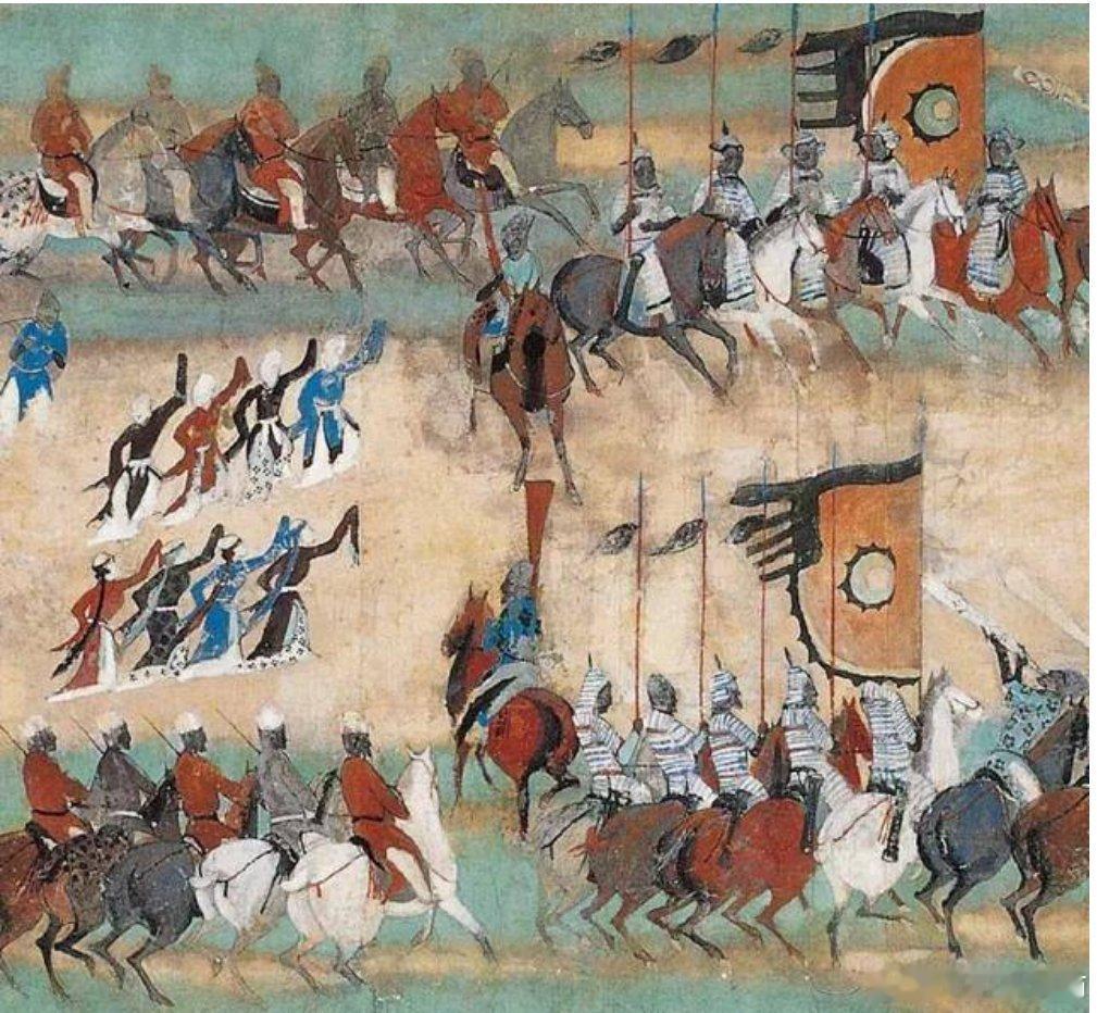 麻烦大V搜索一下敦煌壁画《张议潮出行图》。别四处虚空打靶了,累不累呀?自己比较一下图二。颜色都脱落成那样了,现代人考证一下式样,网上常见的就是这种