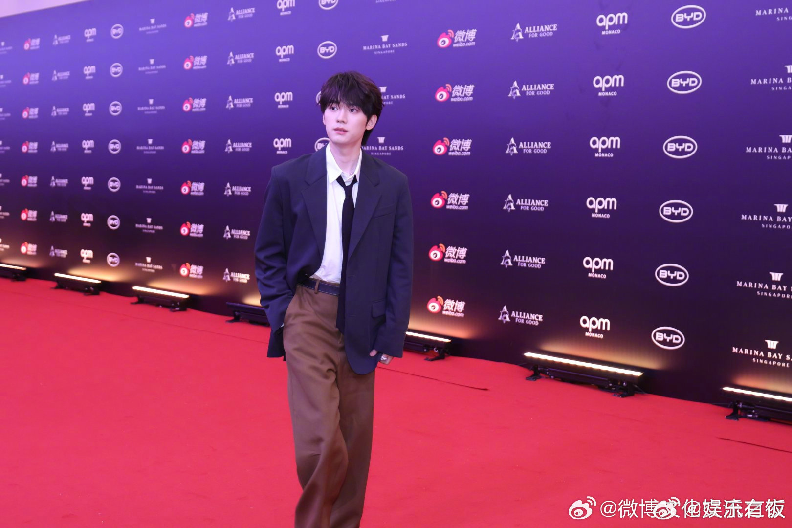新加坡微博文化交流之夜红毯,周翊然一身深灰色西装搭配冬日珠宝优雅登场!修身剪裁凸显挺拔身姿,清澈眼神碰撞绅士气质,步履从容又帅气灵动,生图状态太能打~