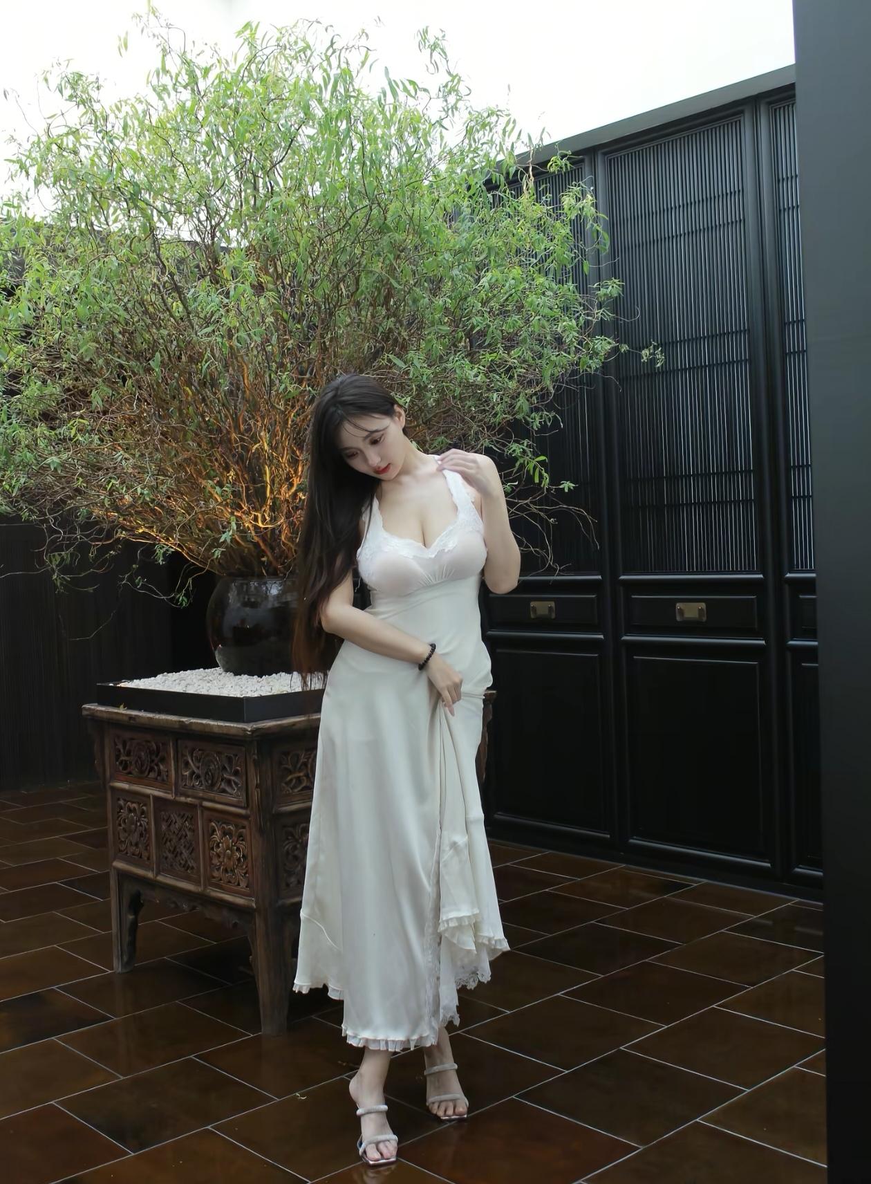 优雅白裙少女,静坐沙发,享受宁静时光。