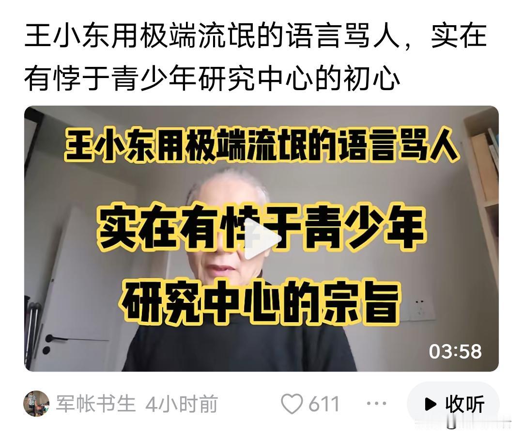 军帐书生应该给王小东道个歉,以前都是一伙的,人家小东站在国家立场上骂逆种骂的对,你干嘛接招? 以前谈俄乌冲突时,军帐书生和王小东观点相似,但王小东讲的是道理和现实,军帐书生除了照搬民主自由几乎说不出啥东西。 他们的分裂大约是在胡适的问题上,但胡适也只是个引子,认清现实回归正道才是道理,包括那个看似比军帐书生高点的刁眼,其实都是小喽啰。 说到高市早苗的疯狂,王小东对国内某些人骂了一句“逆种”,俺觉得骂的就很好。 军帐书生你有啥不高兴的呢?难道你就是小东说的逆种们?