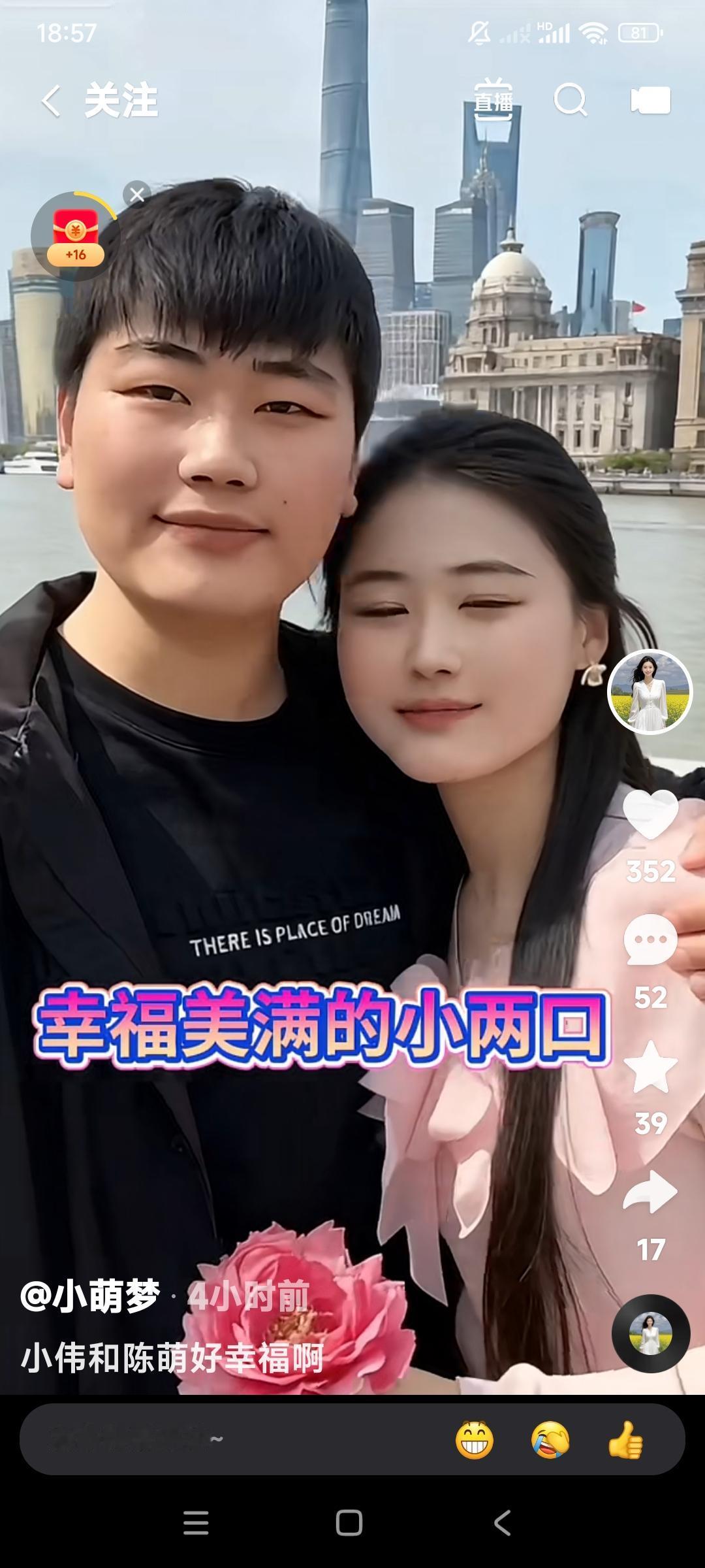 好恩爱的小两口。 陈萌太聪明了,嫁给朱小伟是最正确的选择。 并且支持鼓励朱小伟建立信心,让朱小伟现在越来越优秀。 看着丈夫朱小伟的进步。 陈萌的欣慰之情也表现在行动上。 依偎在丈夫的怀里唱起了情歌。 祝福幸福美满的小两口吧。