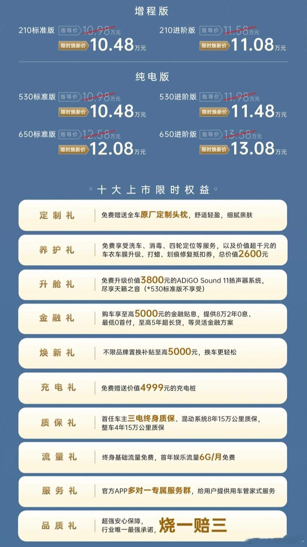 今晚正式上市,限时焕新价10.48万起,赠送4个原厂仿麂皮副头枕、家充桩、养护礼